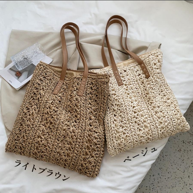 レディース 可愛い ざっくり編みバッグ 韓国風 トートバッグ リゾート 手提げバッグ かごバッグ 夏 肩掛けバッグ 軽量
