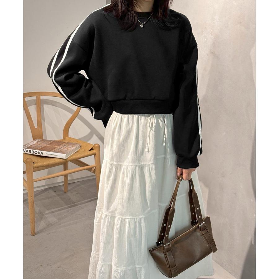 袖ラインスウェット ゆったり ショート丈プルオーバー おしゃれ 暖かい 体型カバー 大人カジュアル 厚手スポーツトップス