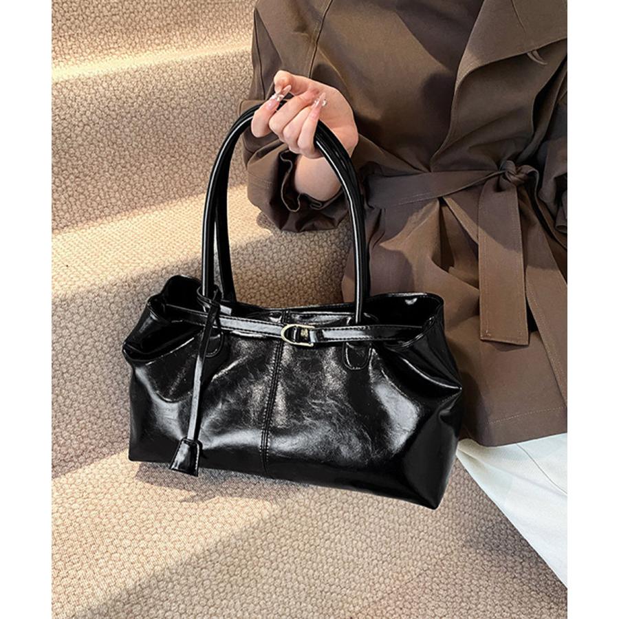 高級感のある上質なフェイクレザー素材と洗練されたデザインで仕上げたトートバッグ。