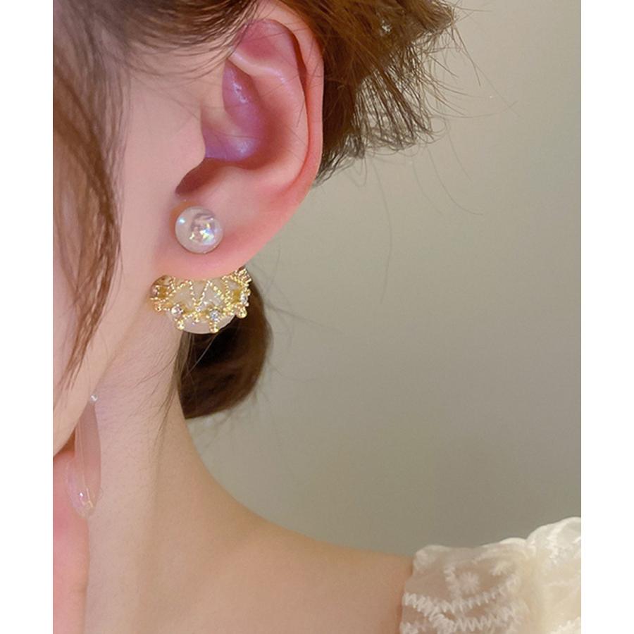 韓国風パールピアス 人魚の涙2WAYピアス 大ぶりスタッドピアス オルチャン 二粒パール 大人可愛 耳飾り 女性パーティ