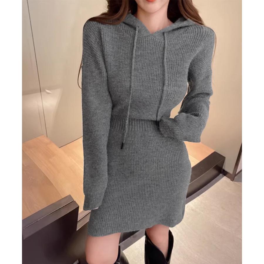 シーズンライクな色合いにセクシーさと女性らしさを両立したお洒落な韓国チックショート丈ニットワンピース