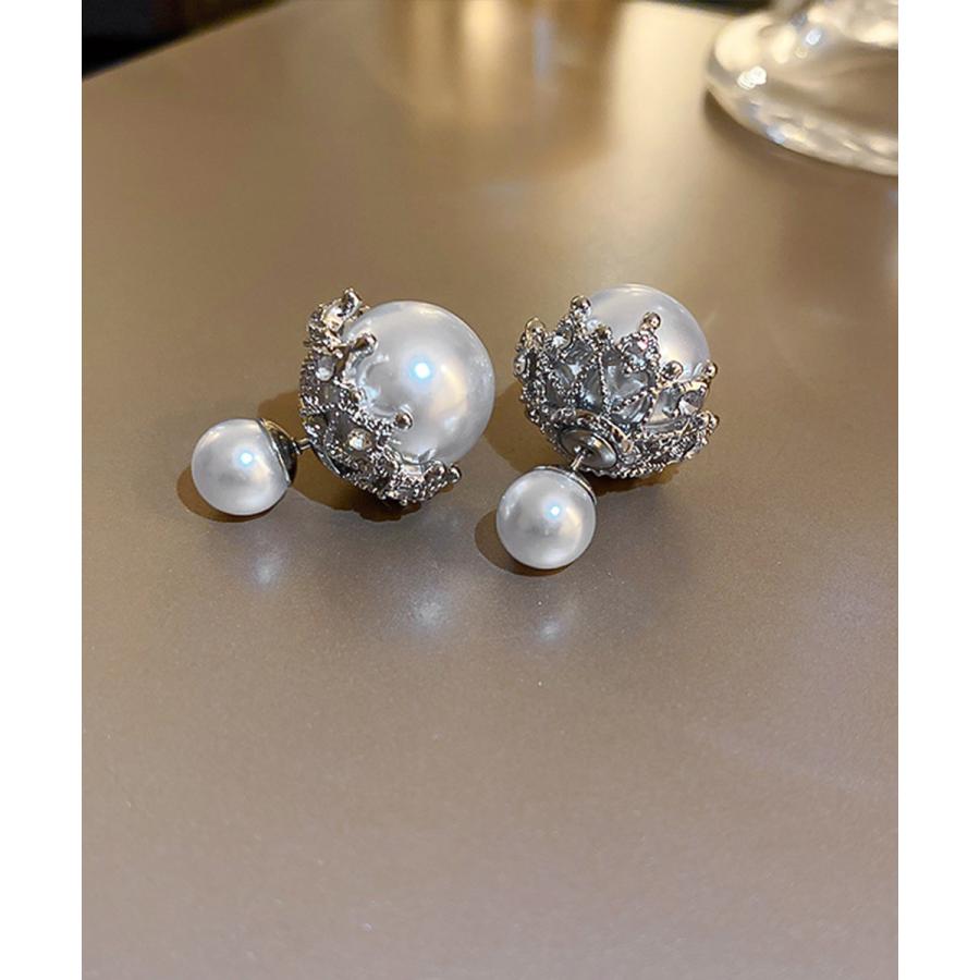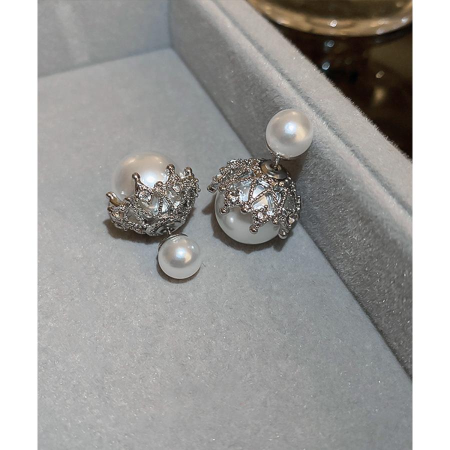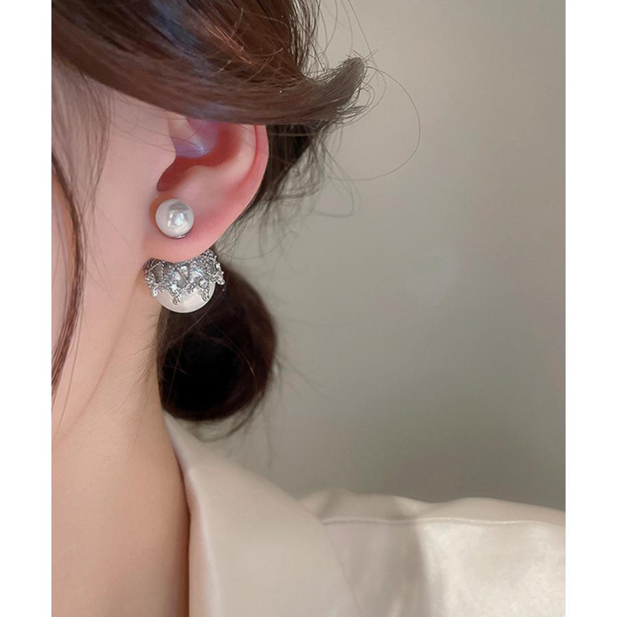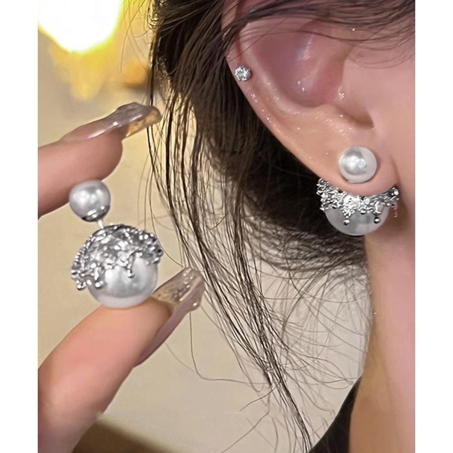 韓国風パールピアス 人魚の涙2WAYピアス 大ぶりスタッドピアス オルチャン 二粒パール 大人可愛 耳飾り 女性パーティ
