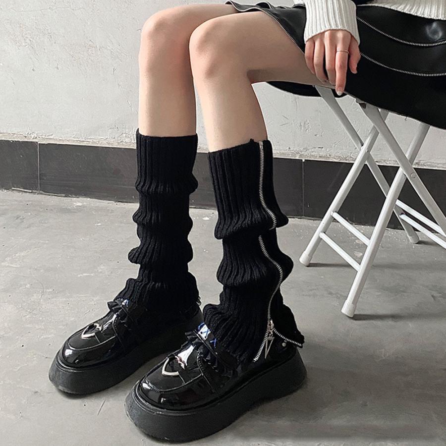トレンドのフレアシルエットを取り入れたジップデザインのレッグウォーマー