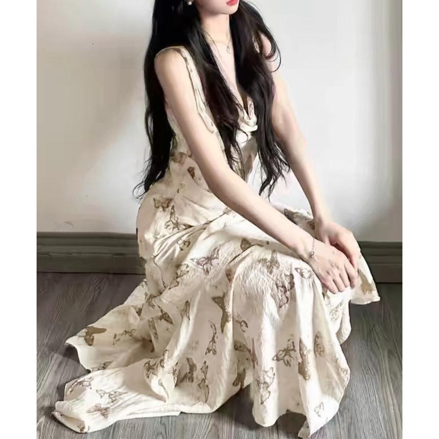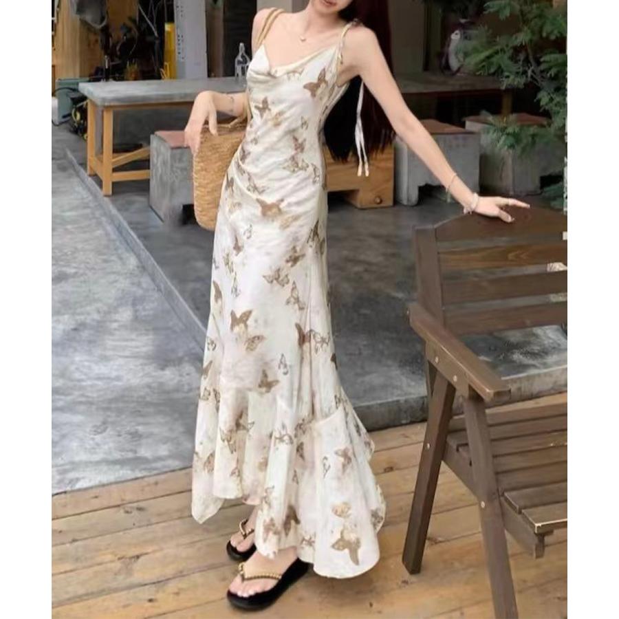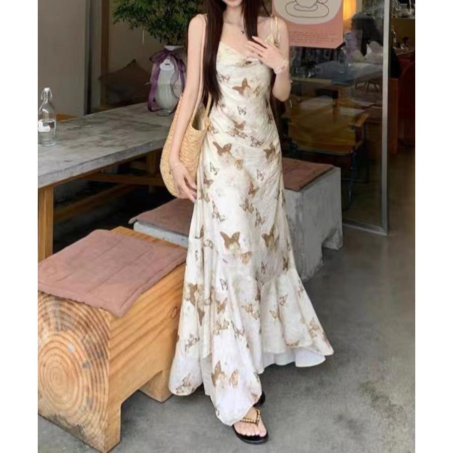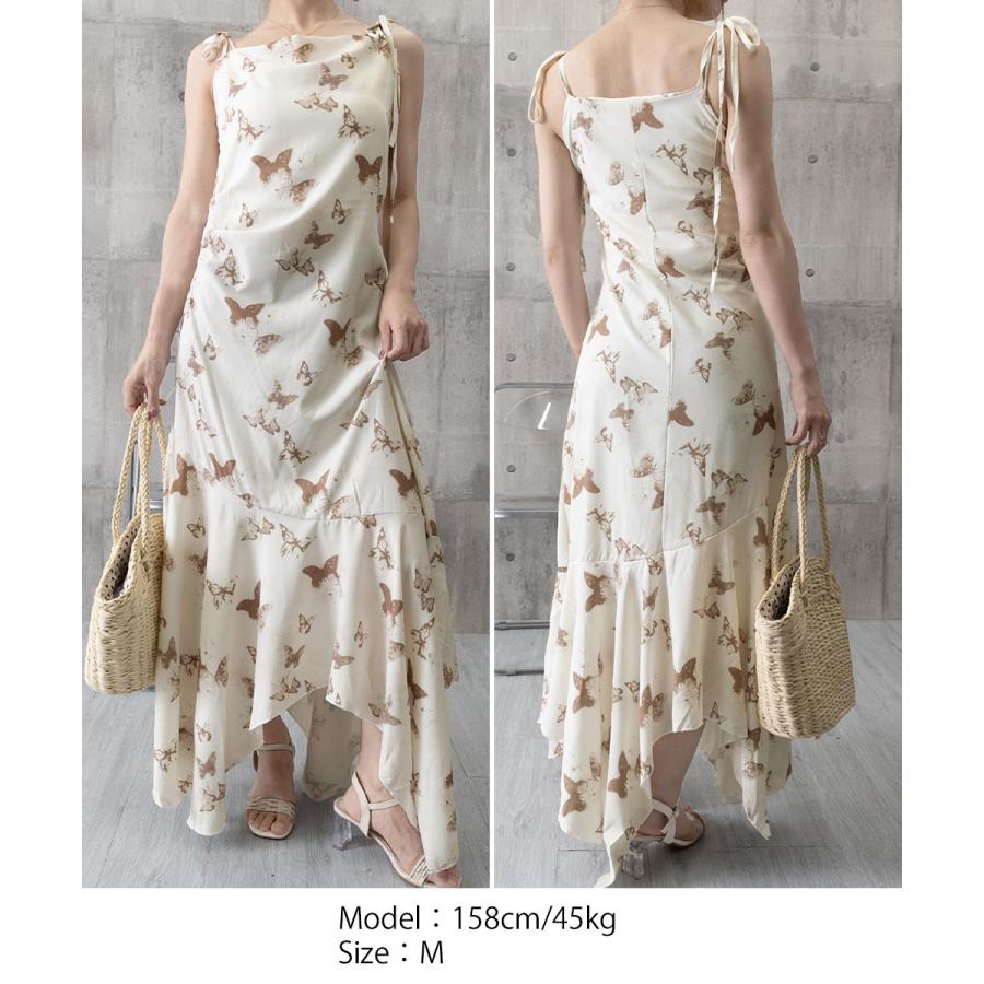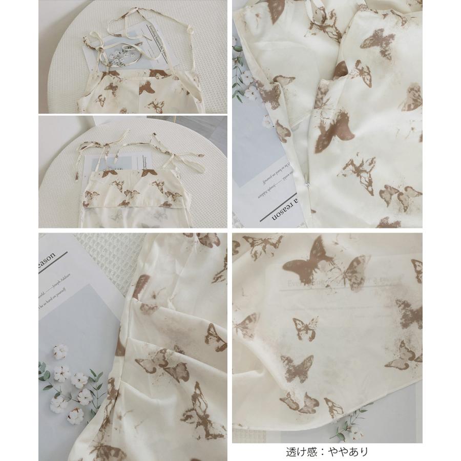 蝶柄が目を引く、フェミニンで華やかなキャミソールワンピース。
