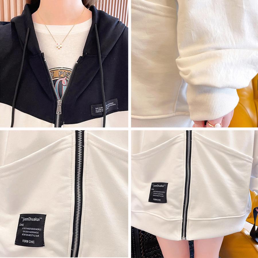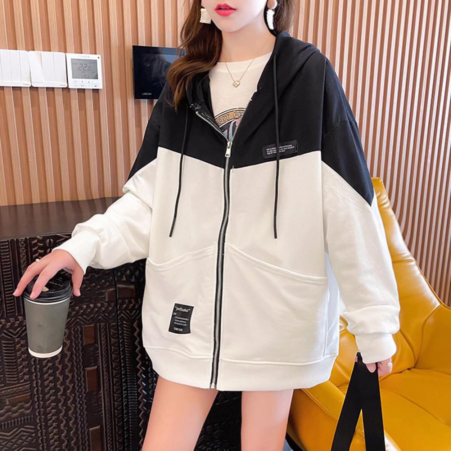 フード付きトレーナー長袖 ゆったり 韓国 薄手フーデッド 体型カバートップス おしゃれバイカラーパーカー ストリート春秋