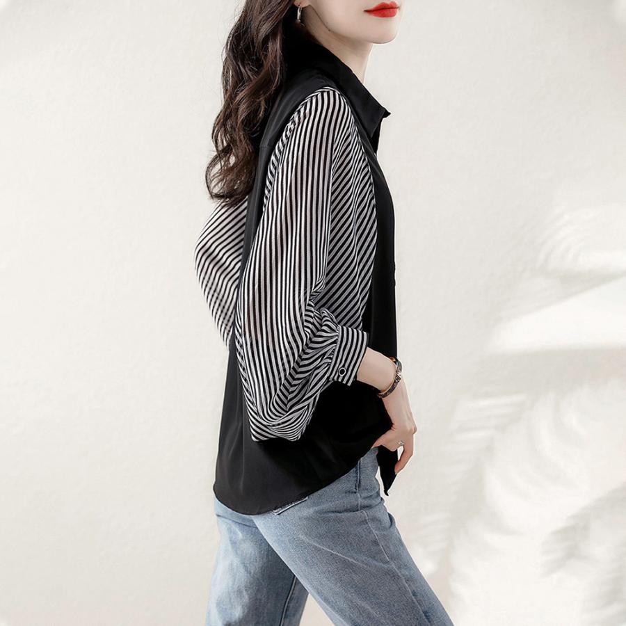 ゆったり ストライプ柄 ブラウス 袖切り替え オフィスカジュアル トップス 大人女性 おしゃれ ブラウス着やせ 通勤大人