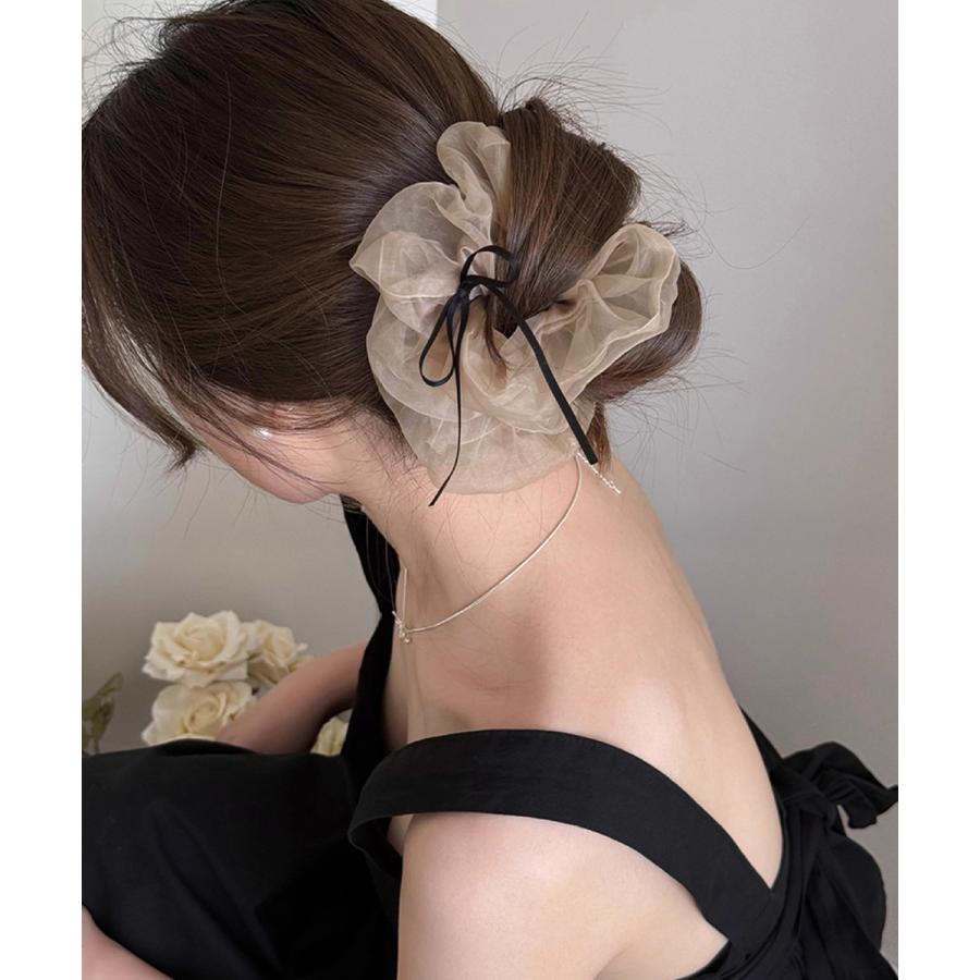 やわらかなシフォン素材に、細リボンのアクセントが可愛いボリュームシュシュ