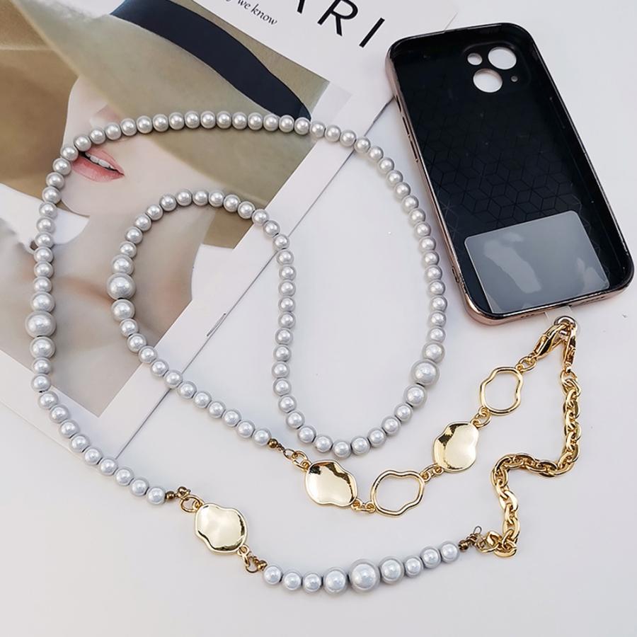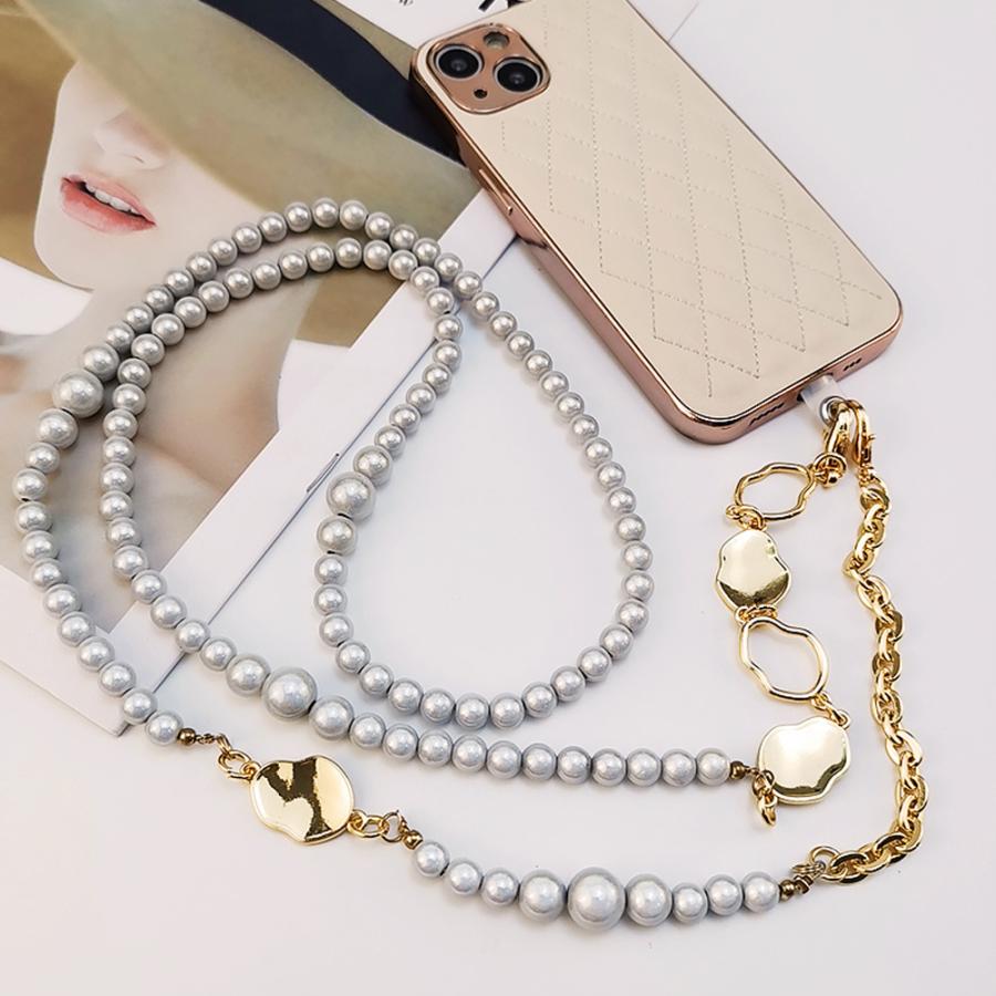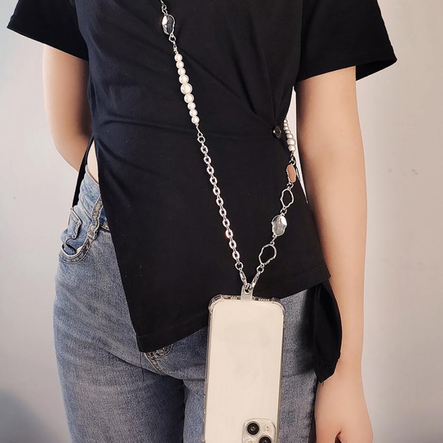 おしゃれ 携帯ストラップ 全機種対応 落下防止 挟むだけストラップ フェイクパール 肩掛け 着脱簡単 長さ調節可能 旅行