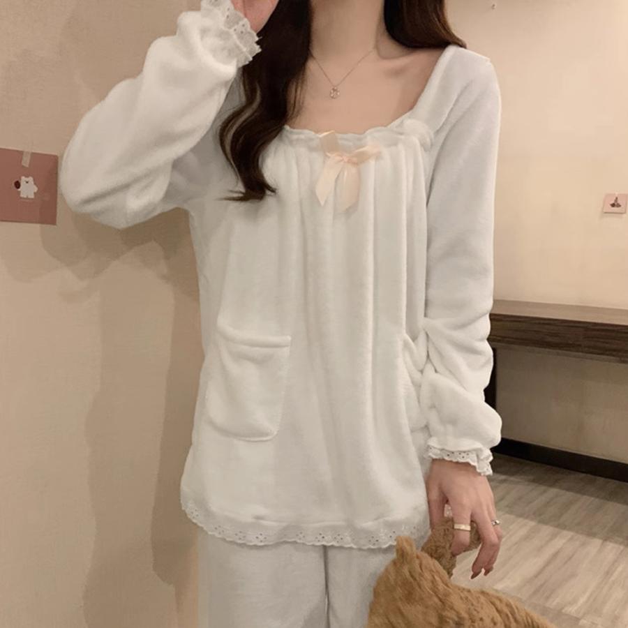 もこもこ 長袖パジャマセット レディース あったか部屋着 可愛い室内着 ワンピースパジャマ ナイトウェア ラウンジウェア