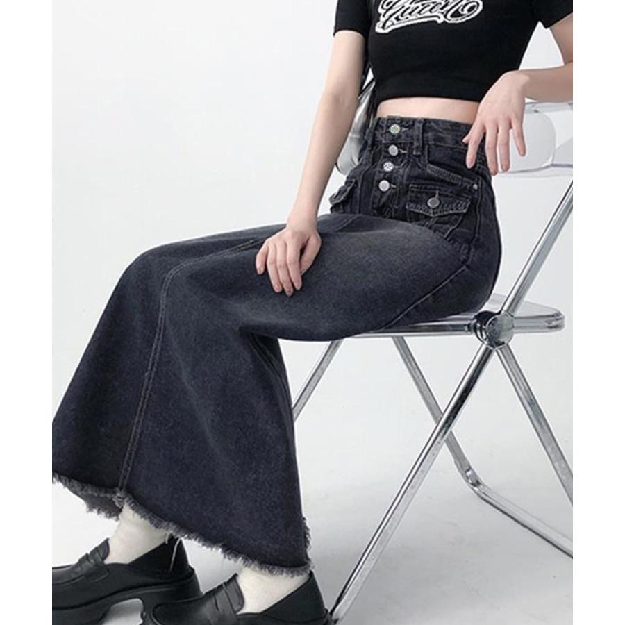 トレンド感漂うハイウエスト仕様で、脚長見せが期待でき、スタイルアップ