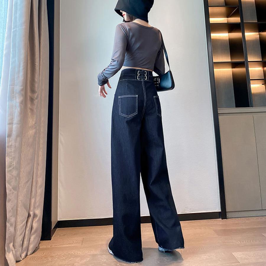 スタイルはよく見えるハイウエストデニムワイドパンツ
