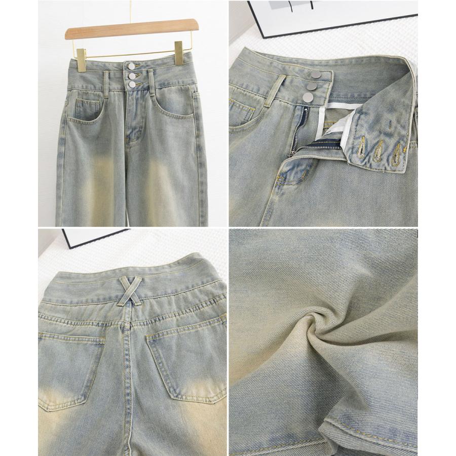 美脚ストレートパンツ 着やせ セミワイドパンツ ボタン付き ジーパン 高く見え ロングズボン オシャレ カジュアルパンツ