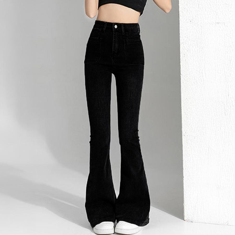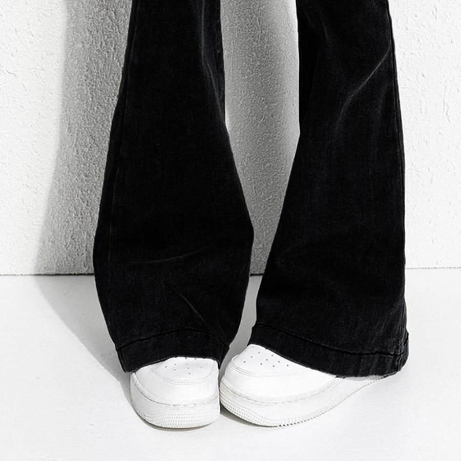 裾に向かってゆるやかに広がる美しいフレアラインのデニムパンツ