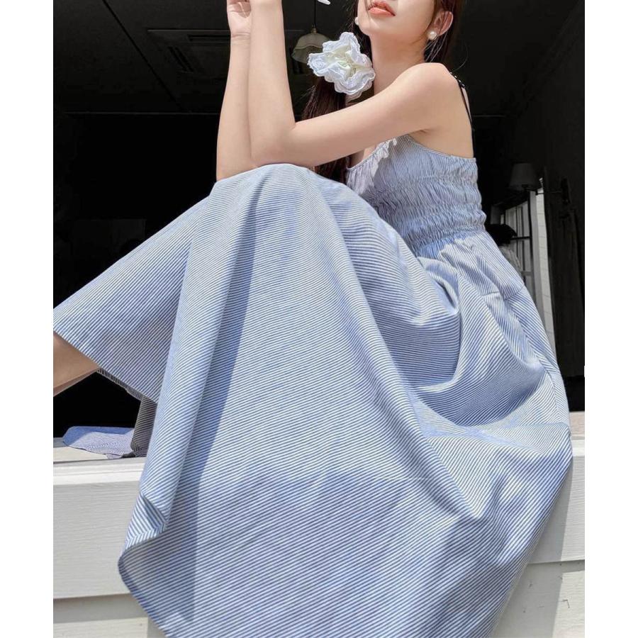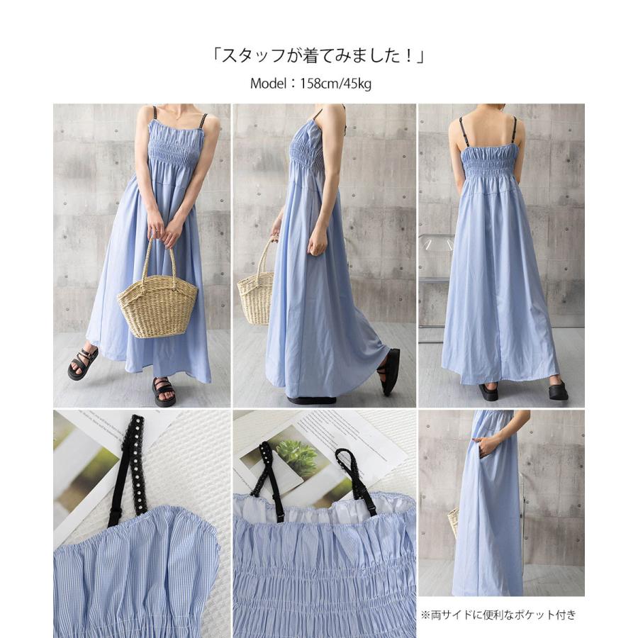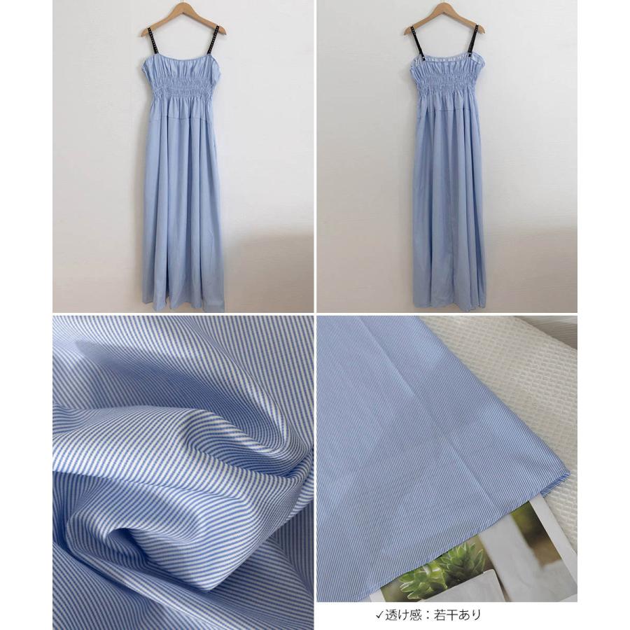 涼しげなストライプ柄が目を引く、大人可愛いキャミワンピース。