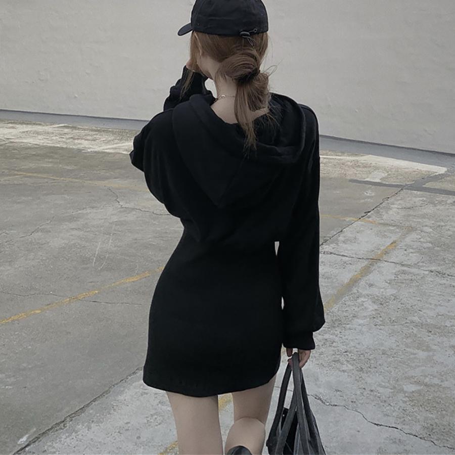 タイトワンピース トレーナーワンピ ショート丈 大人 無地 フェミニン ハイウエスト セクシー おしゃれ カジュアル
