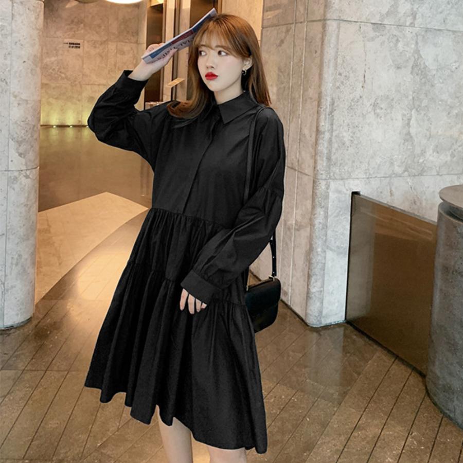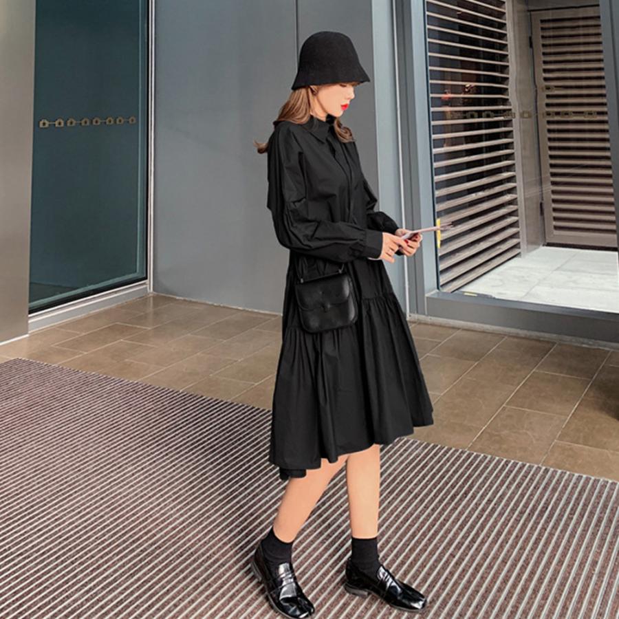ロング丈シャツ ティアード シャツワンピ長袖 フレアワンピース カジュアル 韓国風