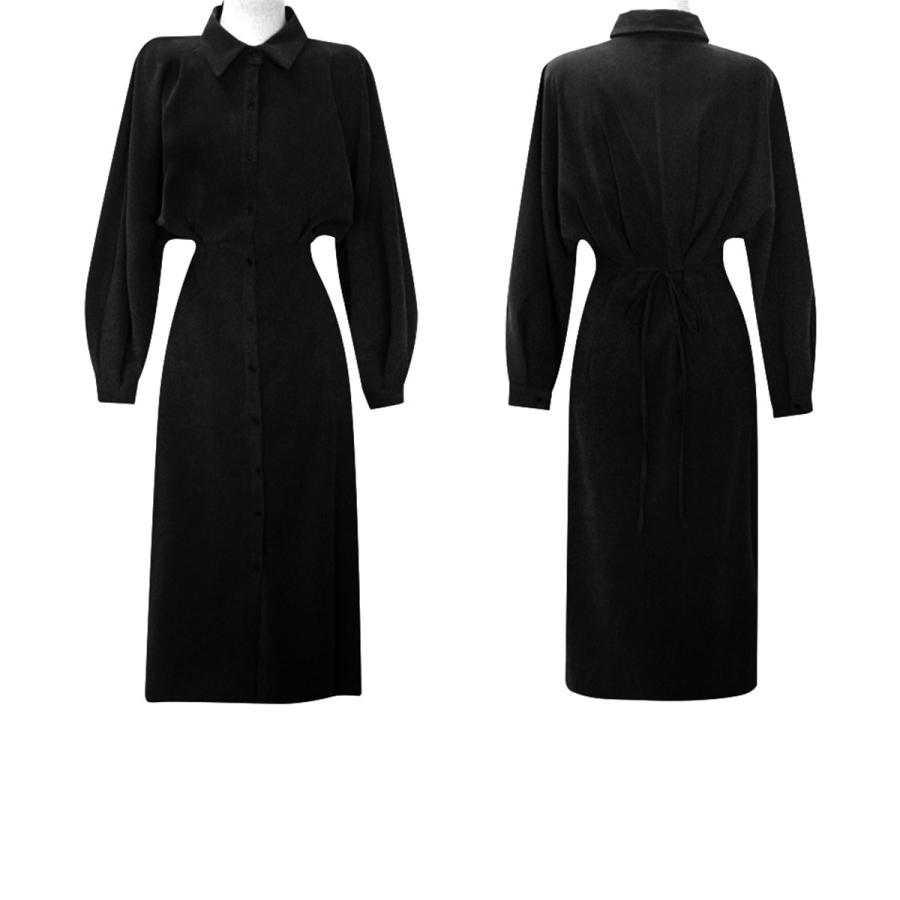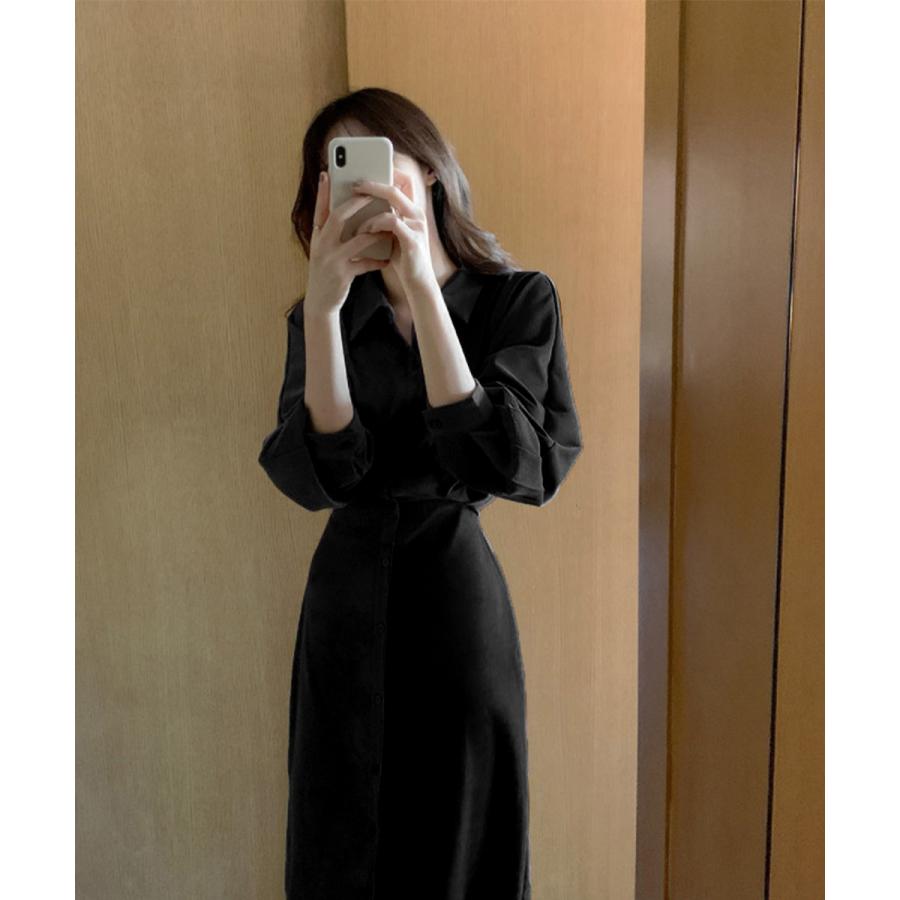 韓国風 ミモレワンピース長袖 レディース 着やせ ロングワンピース上品 大人可愛いワンピ エレガント シャツカーディガン