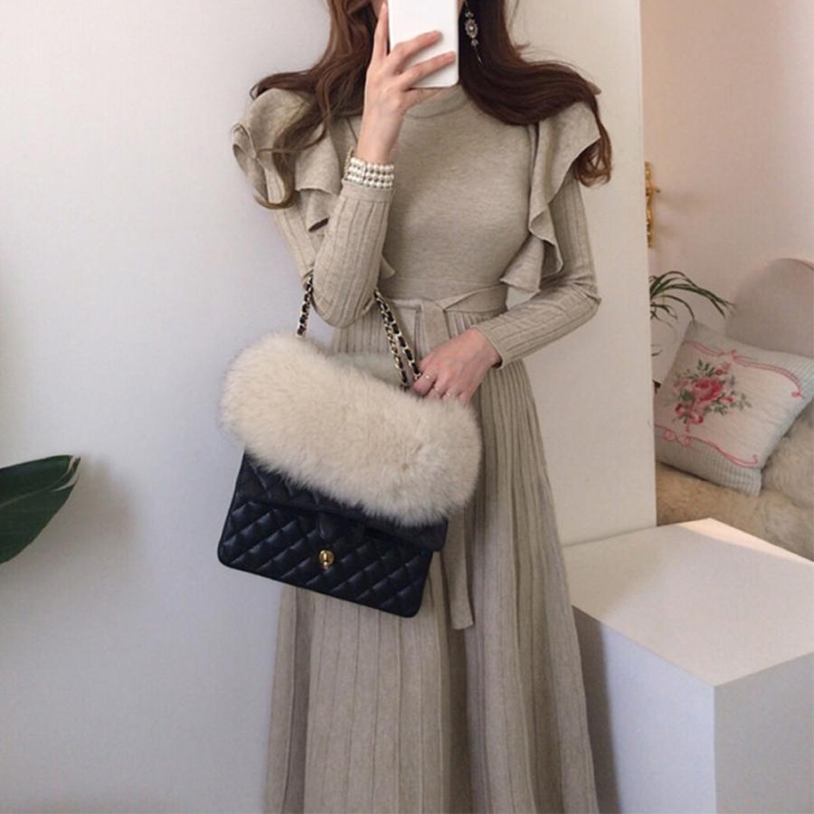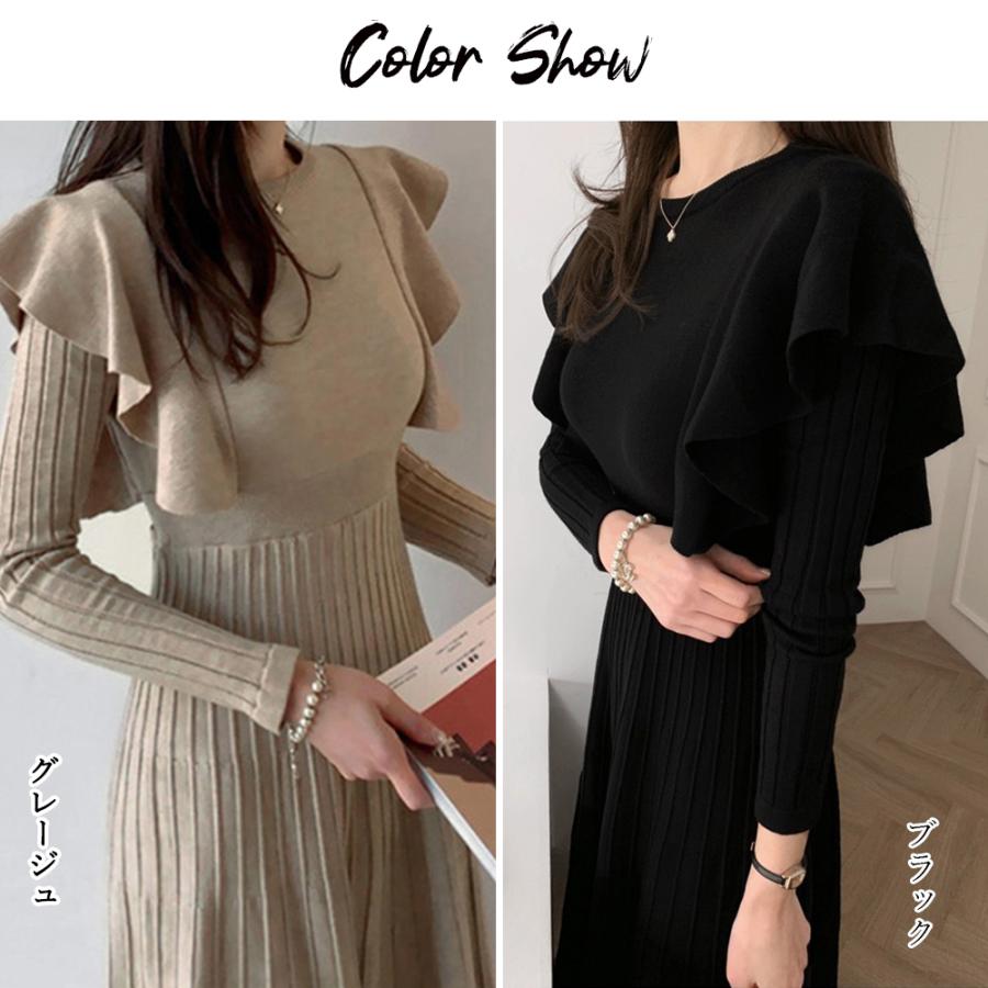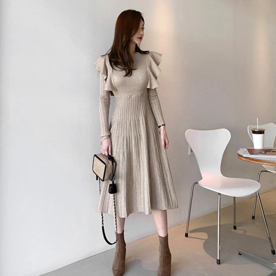今年らしいフェミニン感を演出してくれるショルダーフリルニットワンピース。
