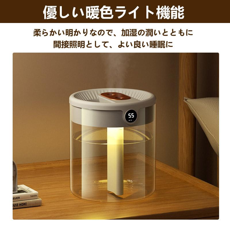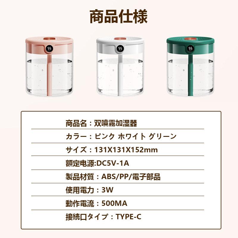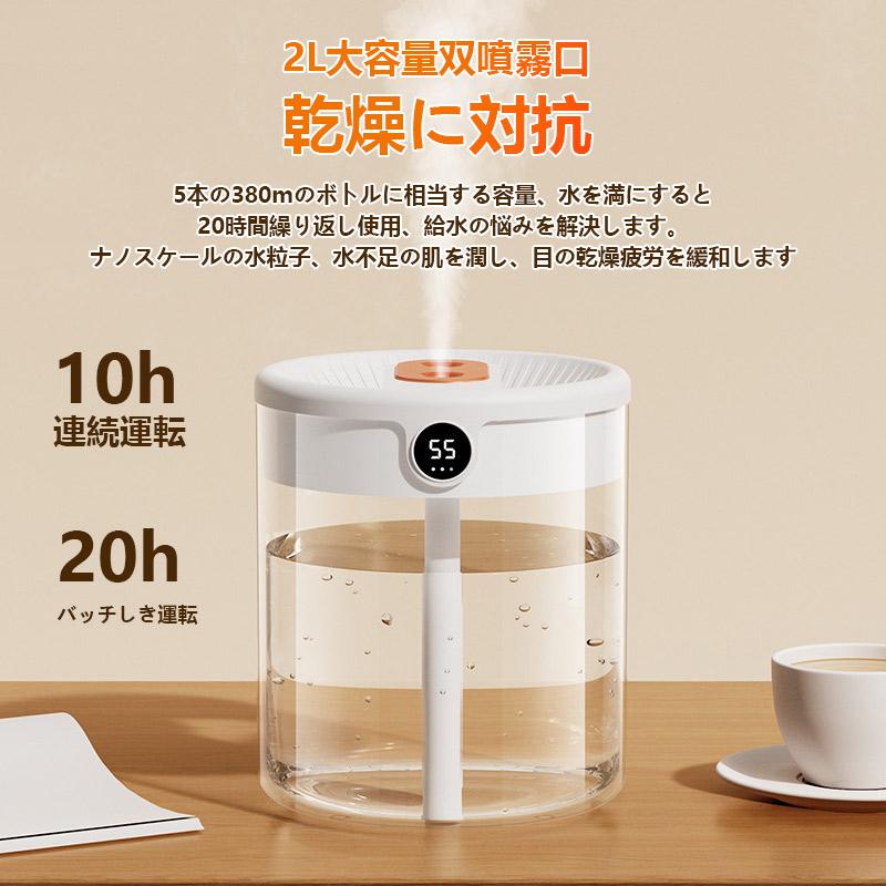 2つのミスト噴霧口が細かいミストで素早くお部屋をうるおす、水が積もることがない超音波方式を採用しています。