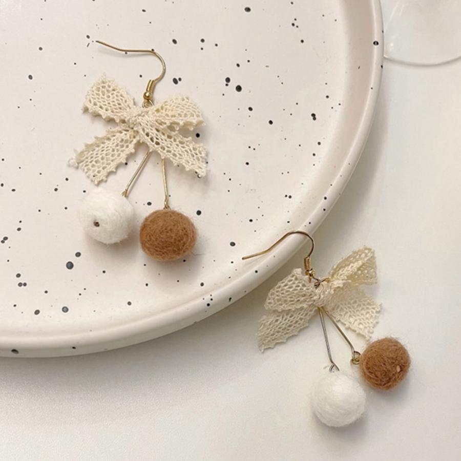 リボン結びアクセサリー 女性 きれいめ 小顔見え耳飾り 大人可愛い キュート 秋冬ロングピアス お洒落 韓国ファッション