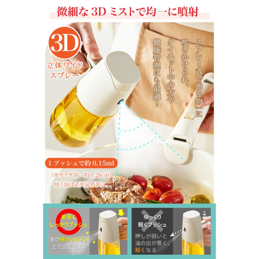 ●スプレー式で油を均一に吹きかけられ、ダイエット中の方や健康管理にも最適!