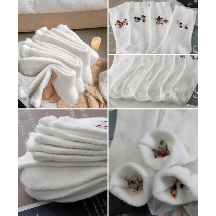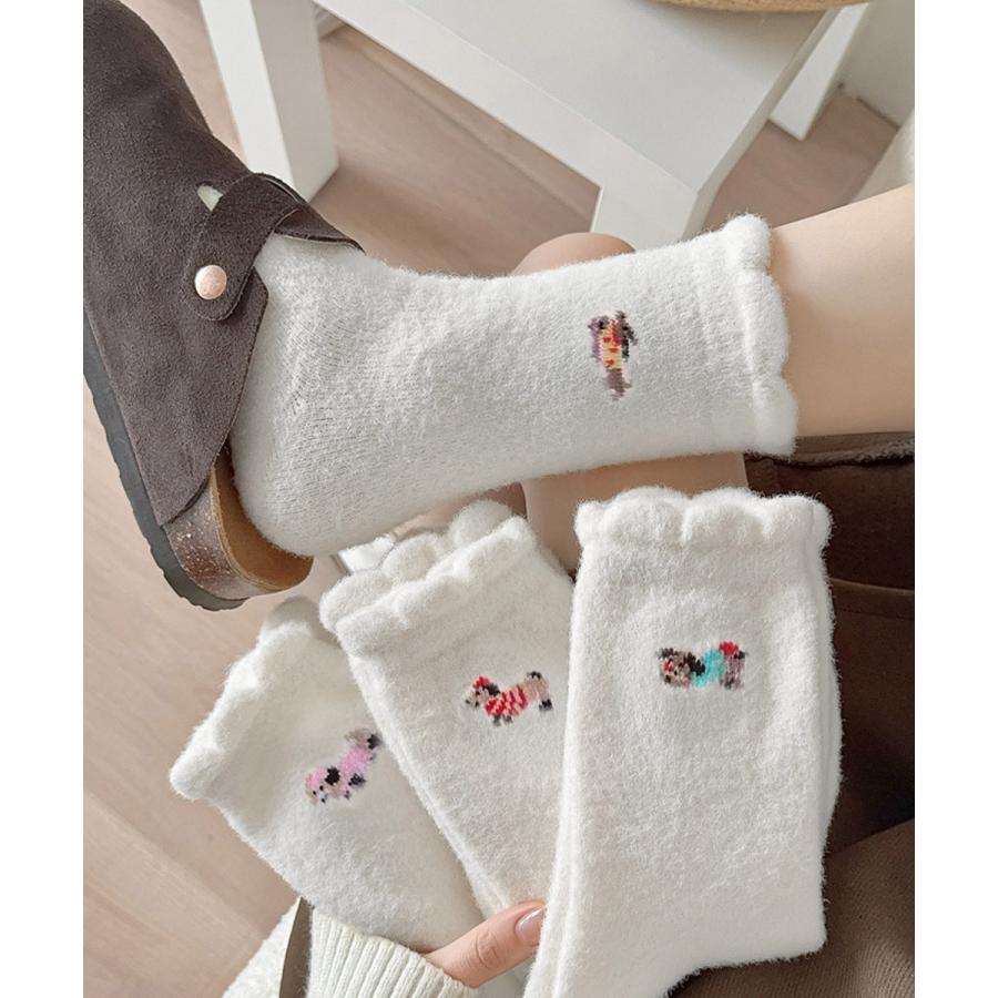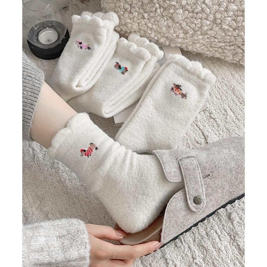 レディース ふわふわ 犬モチーフ ボア靴下冬 無地 ルームソックス防寒 可愛い靴下 4足組 ソックス 冷え取り暖かい靴下