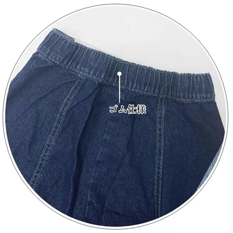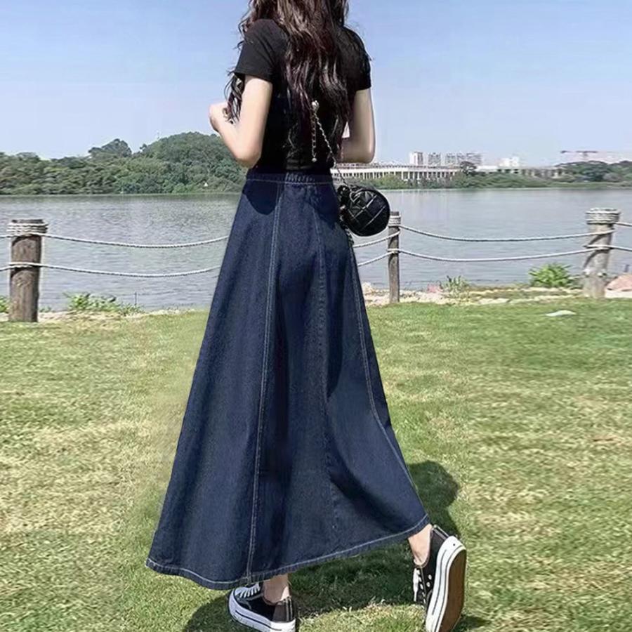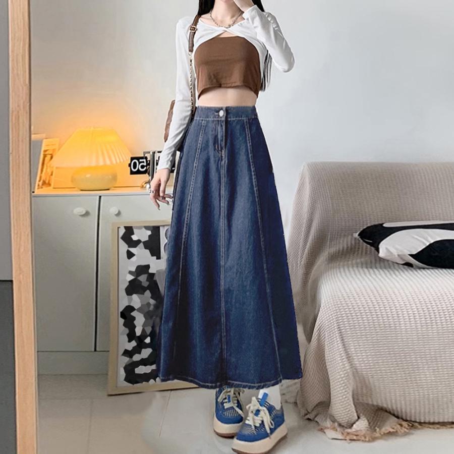 カジュアルコーデにもぴったりの長め丈のフレアデニムスカート