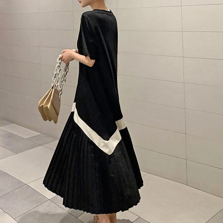 ロング ワンピース レディース プリーツ切り替え 夏 マキシワンピース 半袖 Aライン ワンピース 体型カバー ゆったり