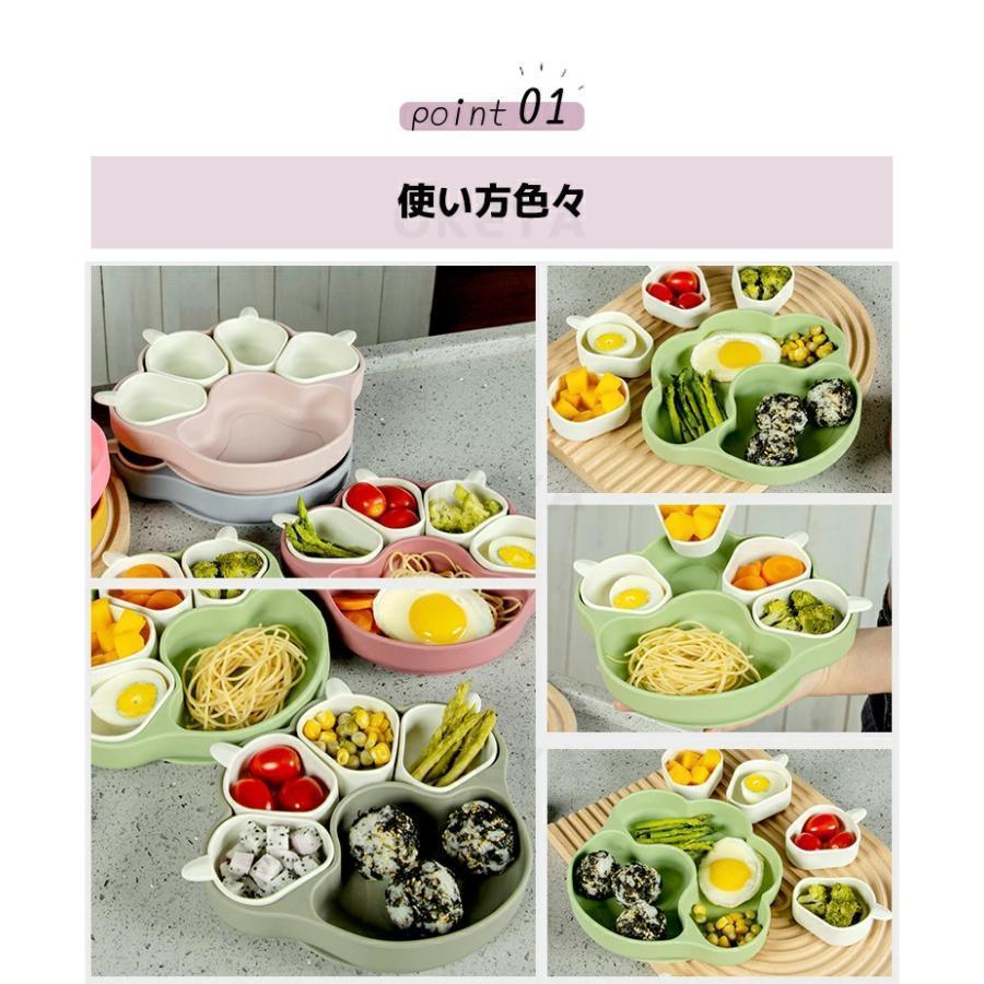 赤ちゃんの食事タイムを楽しく安全にする「ベビー食器 離乳食プレート 吸盤ボウル」は、食品級シリコンで作られたBPAフリーの安心素材を使用しています。猫の爪を模したデザインが可愛らしく、吸盤付きでひっくり返らないので、食事中のストレスを軽減します。仕切りがあるため、異なる食材を分けて盛り付けることができ、赤ちゃんの食事をより楽しく彩ります。出産祝いのギフトとしても最適です。