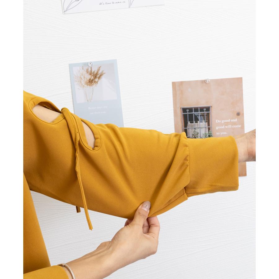 袖のリボンデザインが、さりげなくおしゃれな雰囲気をプラスするTシャツカットソー