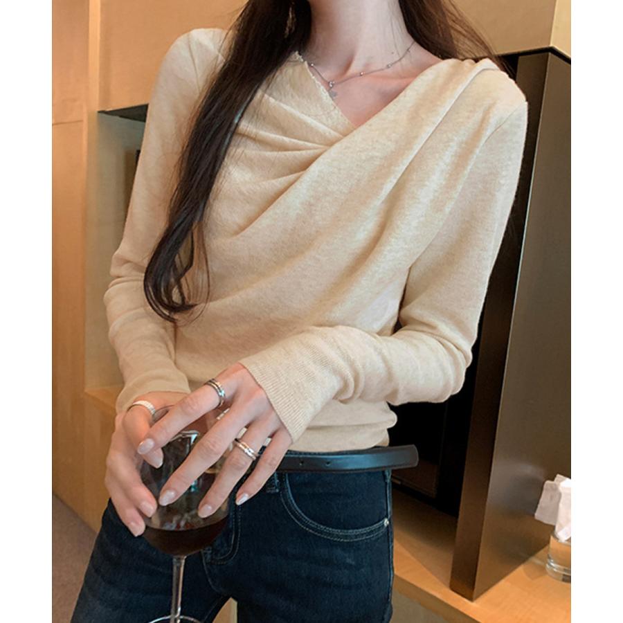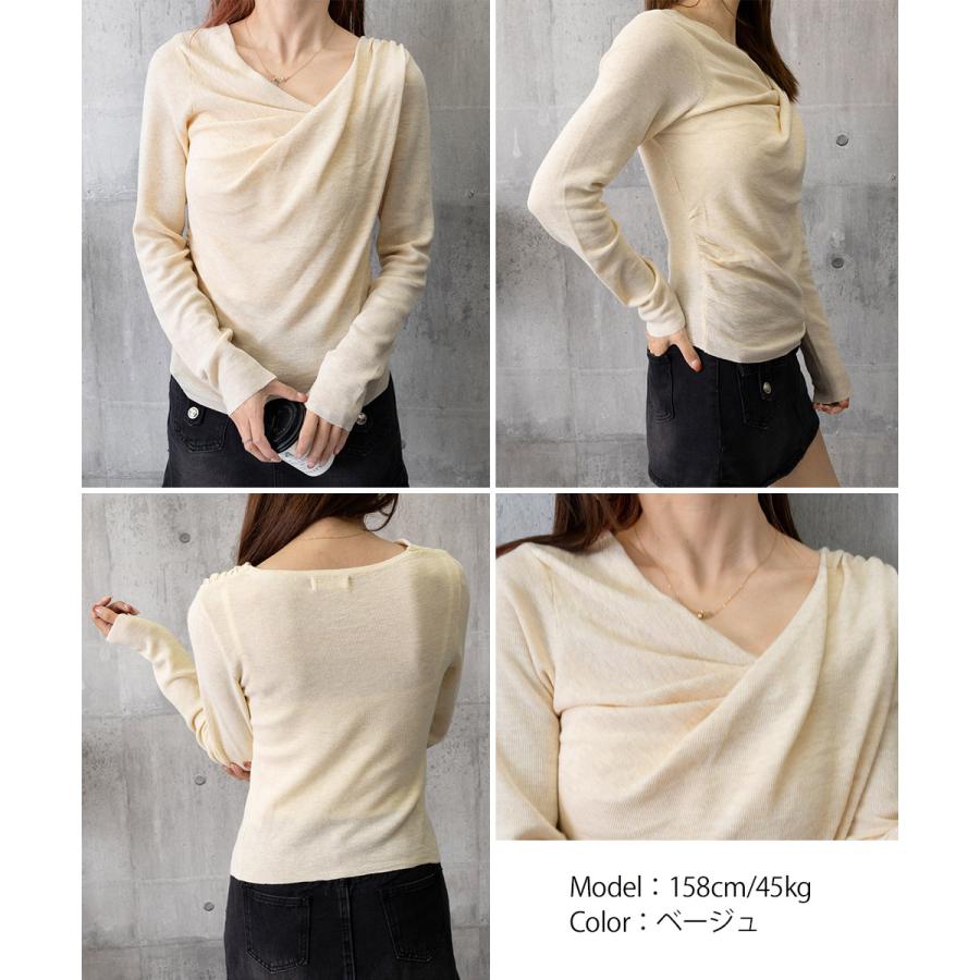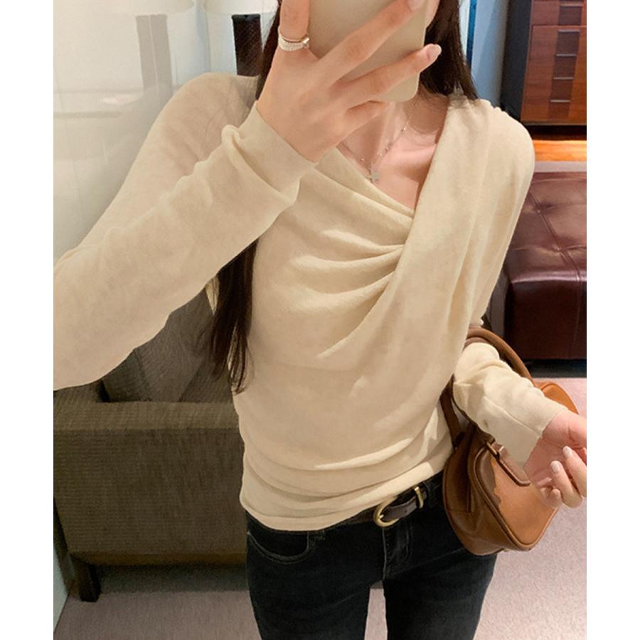 上品なドレープデザインが魅力の長袖ニットトップス。
