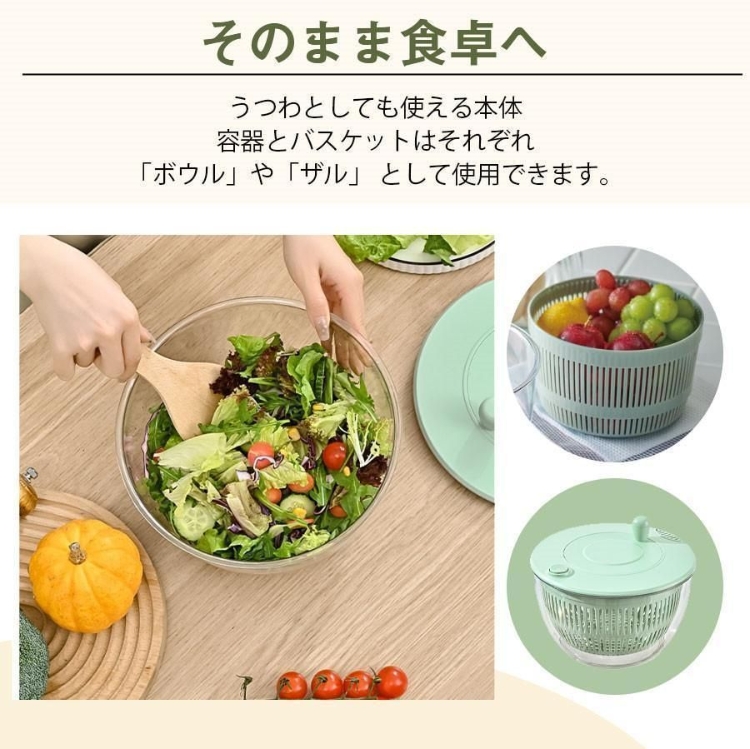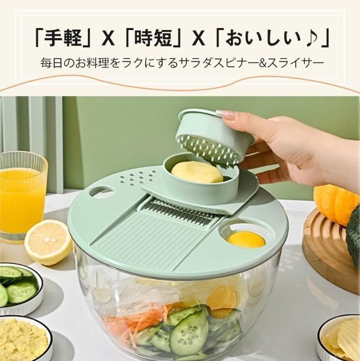 商品詳細: カラー:/画像通り ■商品説明 スライサ一とサラダスピナ一の1台2役のセット♪ カットプレ一トをセットして、全5種類薄切り千切りつま切り薄千切りおろしに野菜をカットしていただけます。 スライス後は、パスケットを取り出しそのまま水洗い。ハンドルをセットしてプッシュするだけで 水切りまでスム一ズです。 また、パ一ツが分解でき、お手入れもラクラク。パ一ツがバスケットの中人びったり収まるから、 収納時も便利です。 ■素材 ポリスチレン、その他。