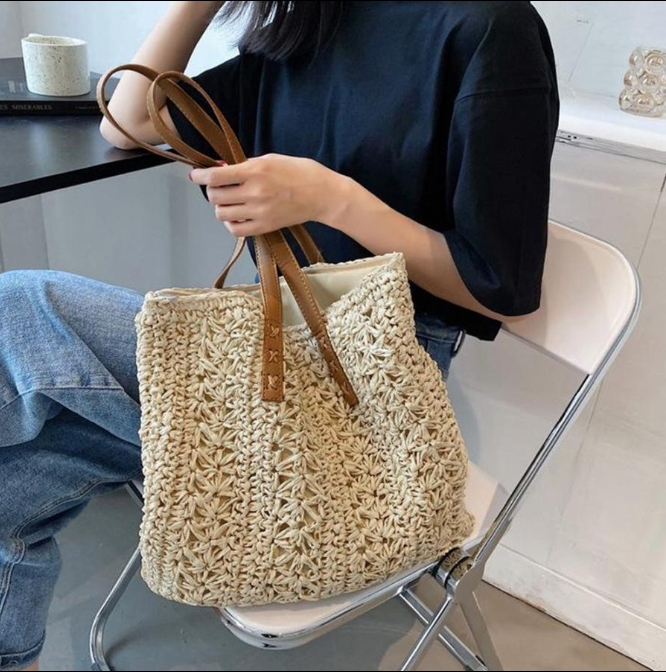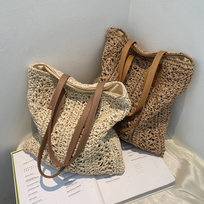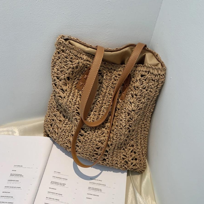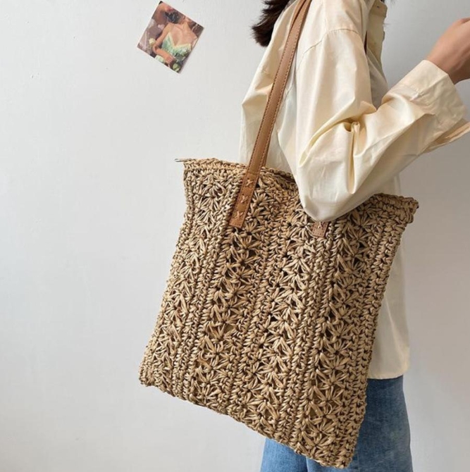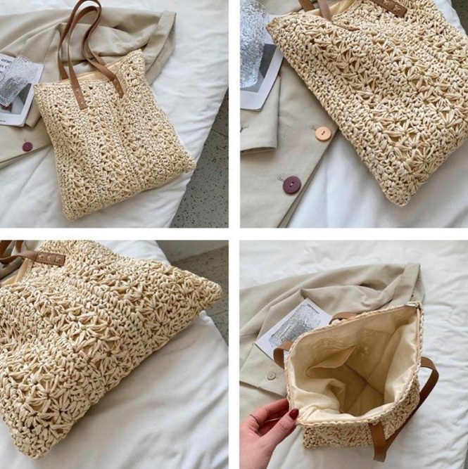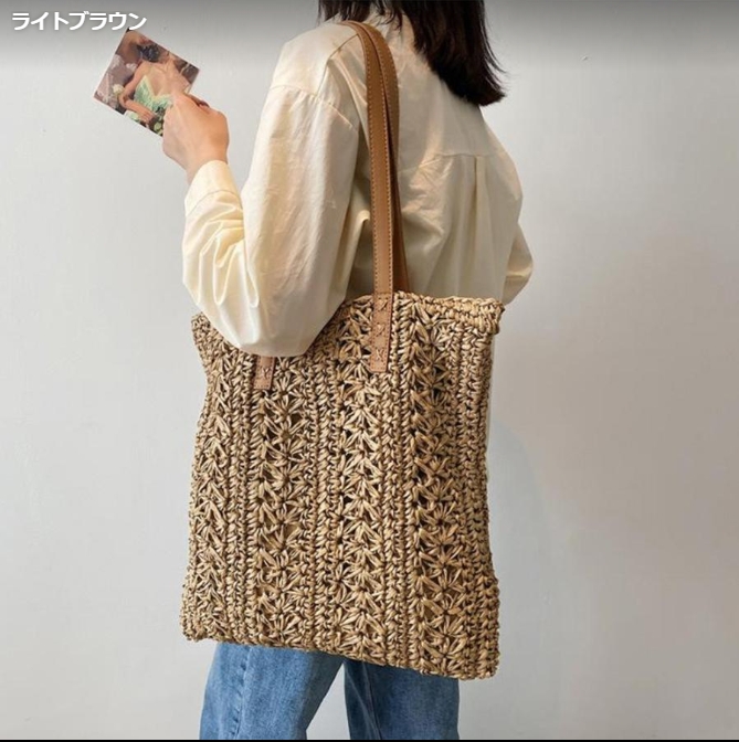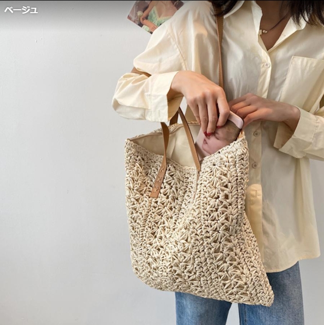 レディース 可愛い ざっくり編みバッグ 韓国風 トートバッグ リゾート 手提げバッグ かごバッグ 夏 肩掛けバッグ 軽量