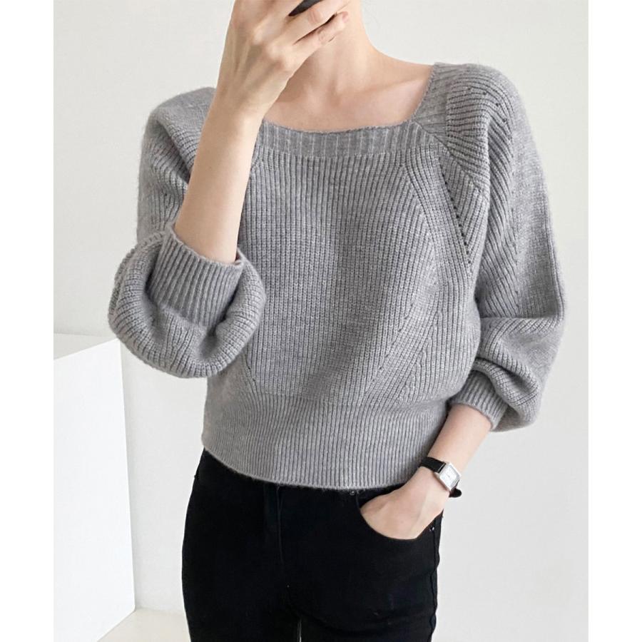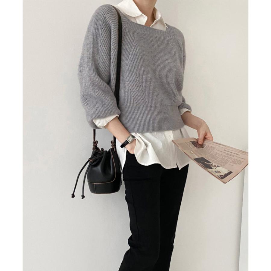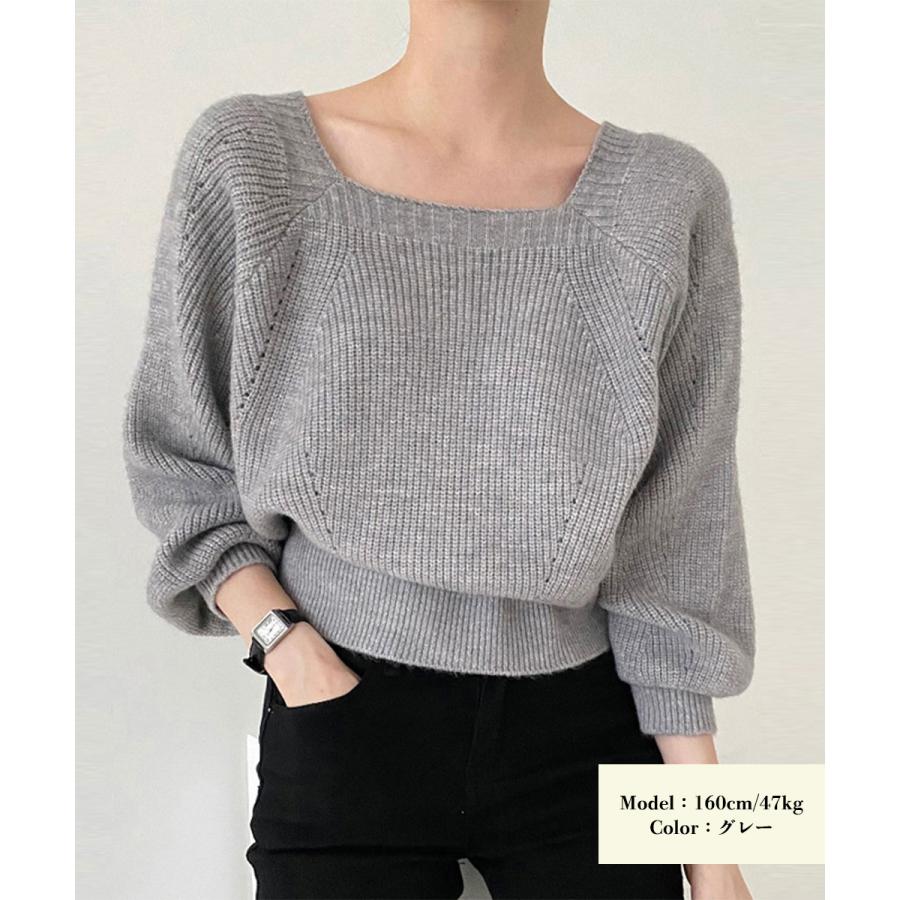 セーター プルオーバー ニットソー スクエアネック 編み オフィス カジュアル 大人 フェミニン シンプル