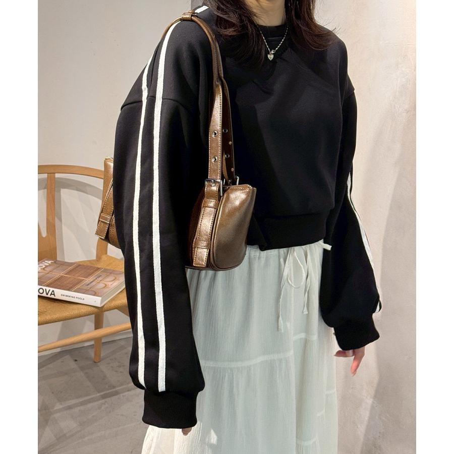 袖ラインスウェット ゆったり ショート丈プルオーバー おしゃれ 暖かい 体型カバー 大人カジュアル 厚手スポーツトップス