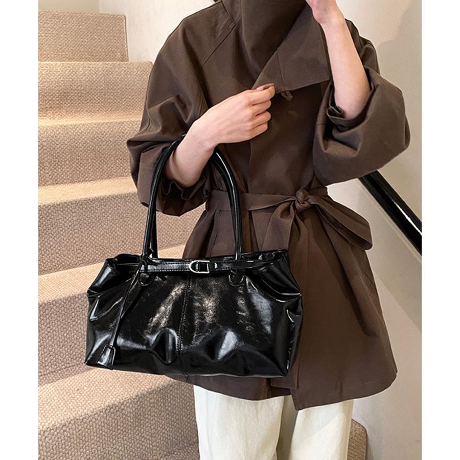 高級感のある上質なフェイクレザー素材と洗練されたデザインで仕上げたトートバッグ。