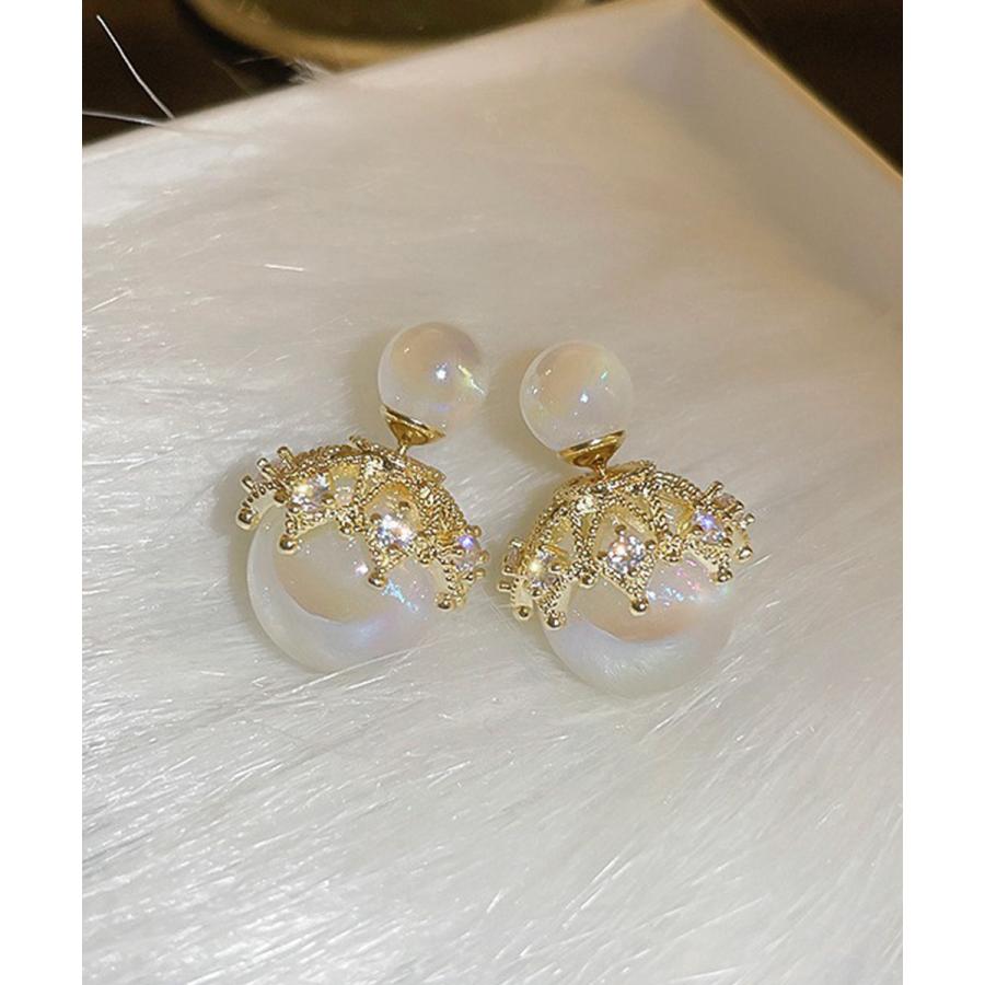 韓国風パールピアス 人魚の涙2WAYピアス 大ぶりスタッドピアス オルチャン 二粒パール 大人可愛 耳飾り 女性パーティ