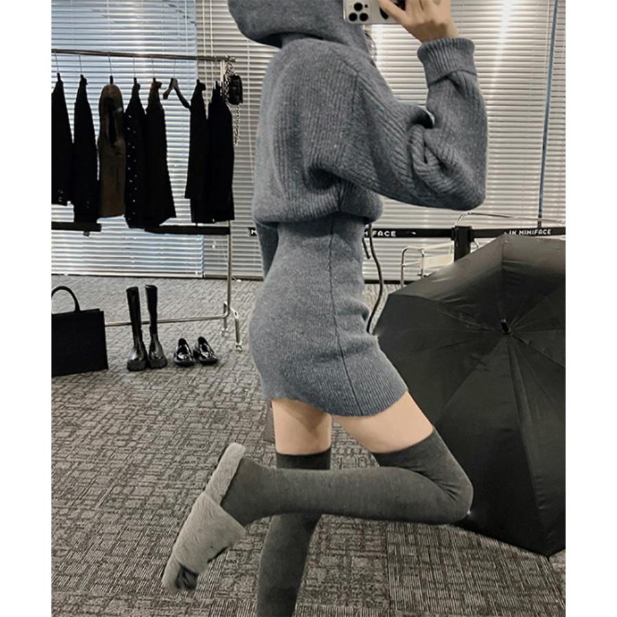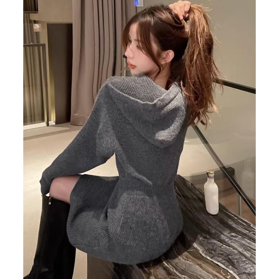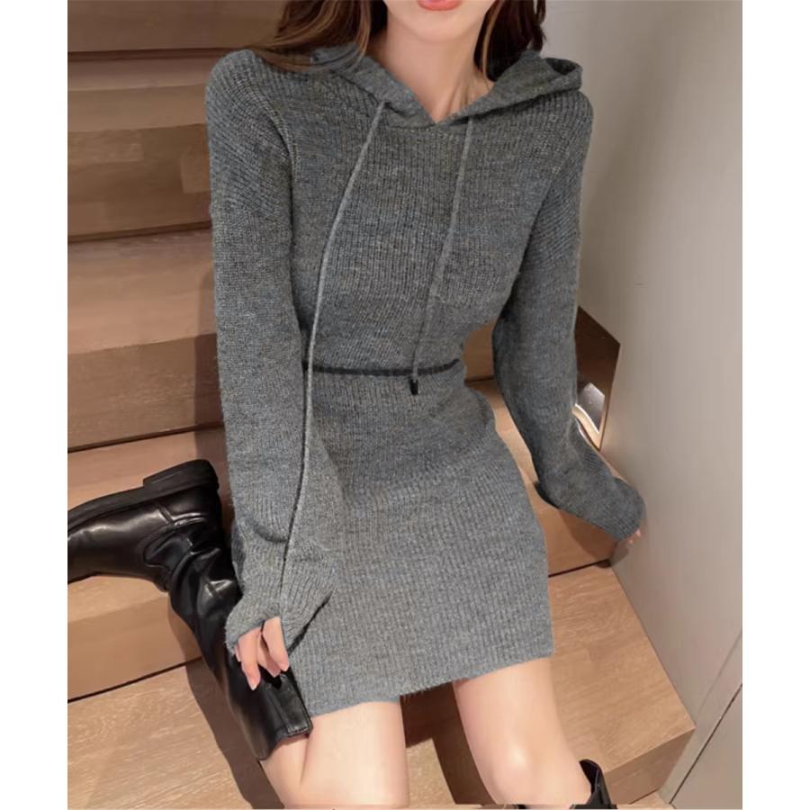 シーズンライクな色合いにセクシーさと女性らしさを両立したお洒落な韓国チックショート丈ニットワンピース