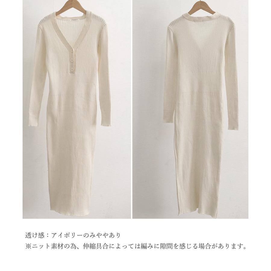 Vネックストレッチワンピ レディース オフィスカジュアル ミモレ丈ワンピ ウエストマーク ハイウエスト リブニット春秋冬