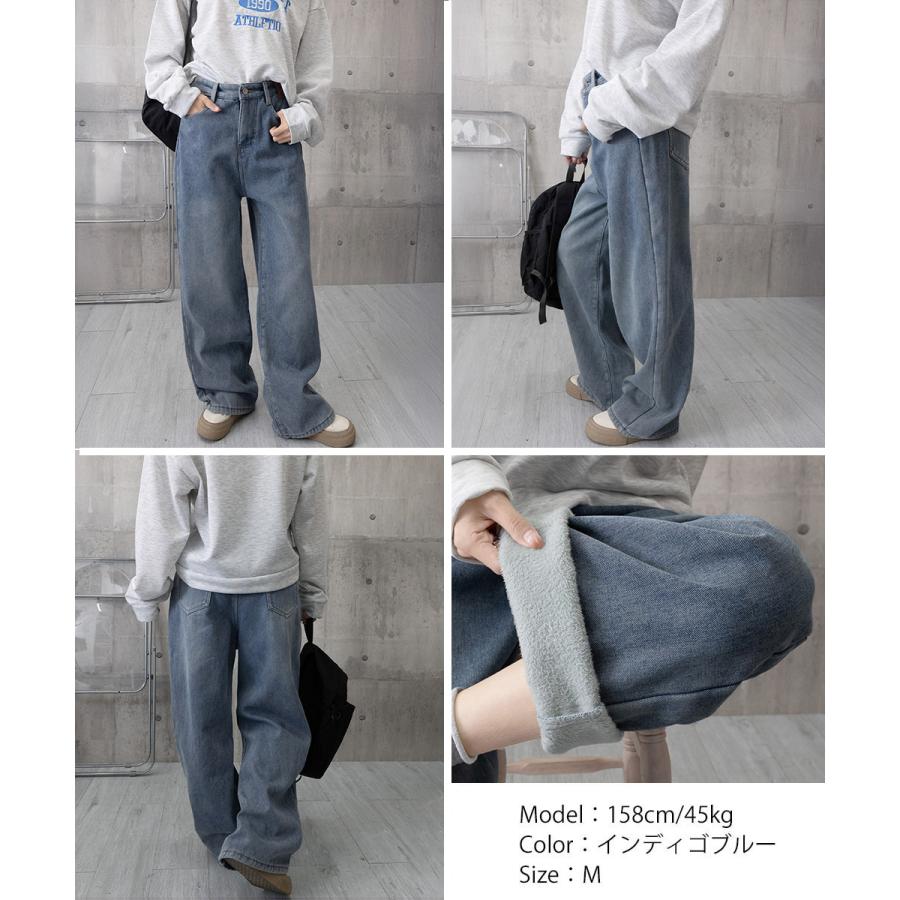ハイウエストストレートパンツ レディース裏ボアロングパンツ カジュアル 美脚脚長レトロデニム 着やせ あったかパンツ秋冬
