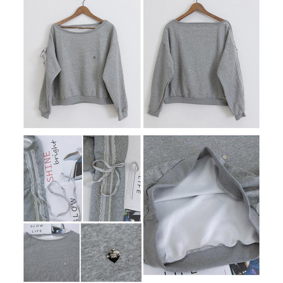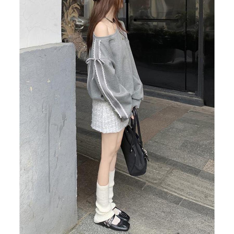 韓国風のカジュアルさとフェミニンさを兼ね備えたレディースオフショルダー長袖スウェット。