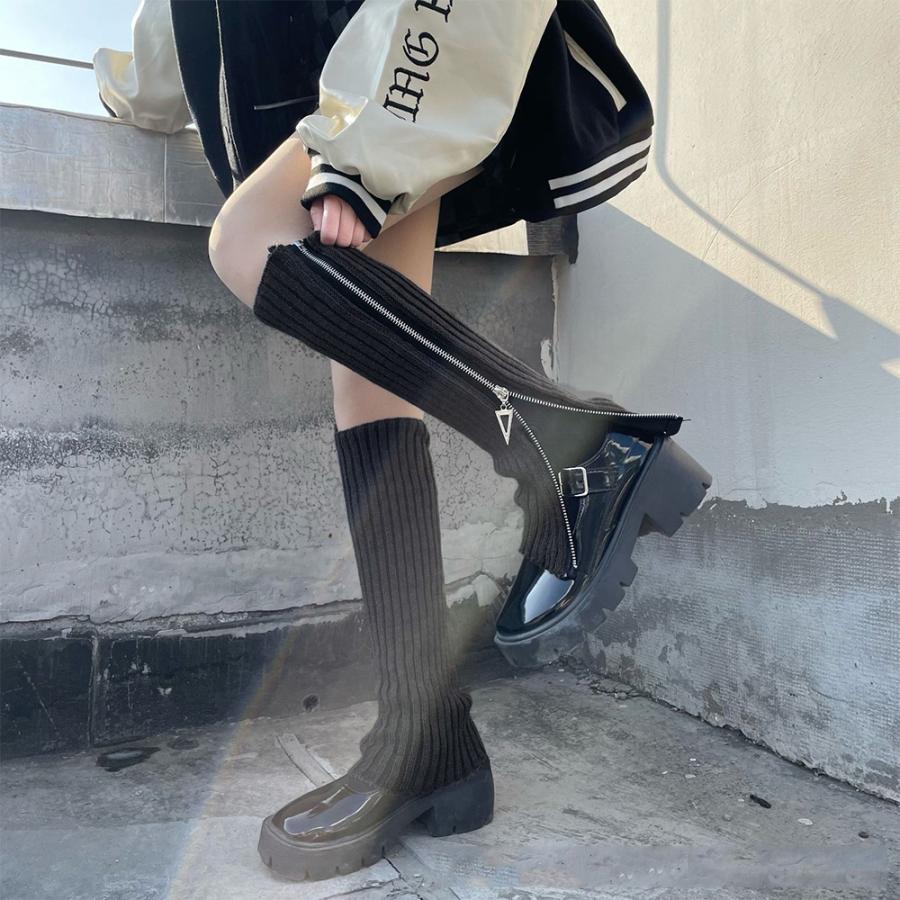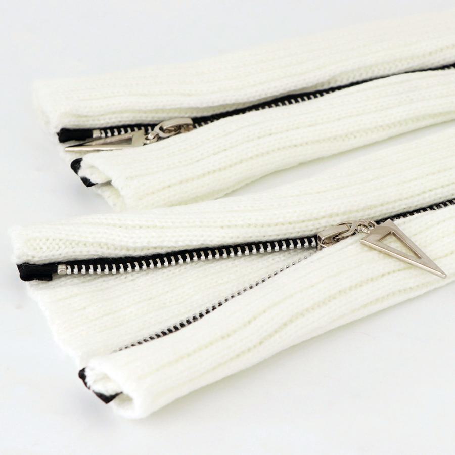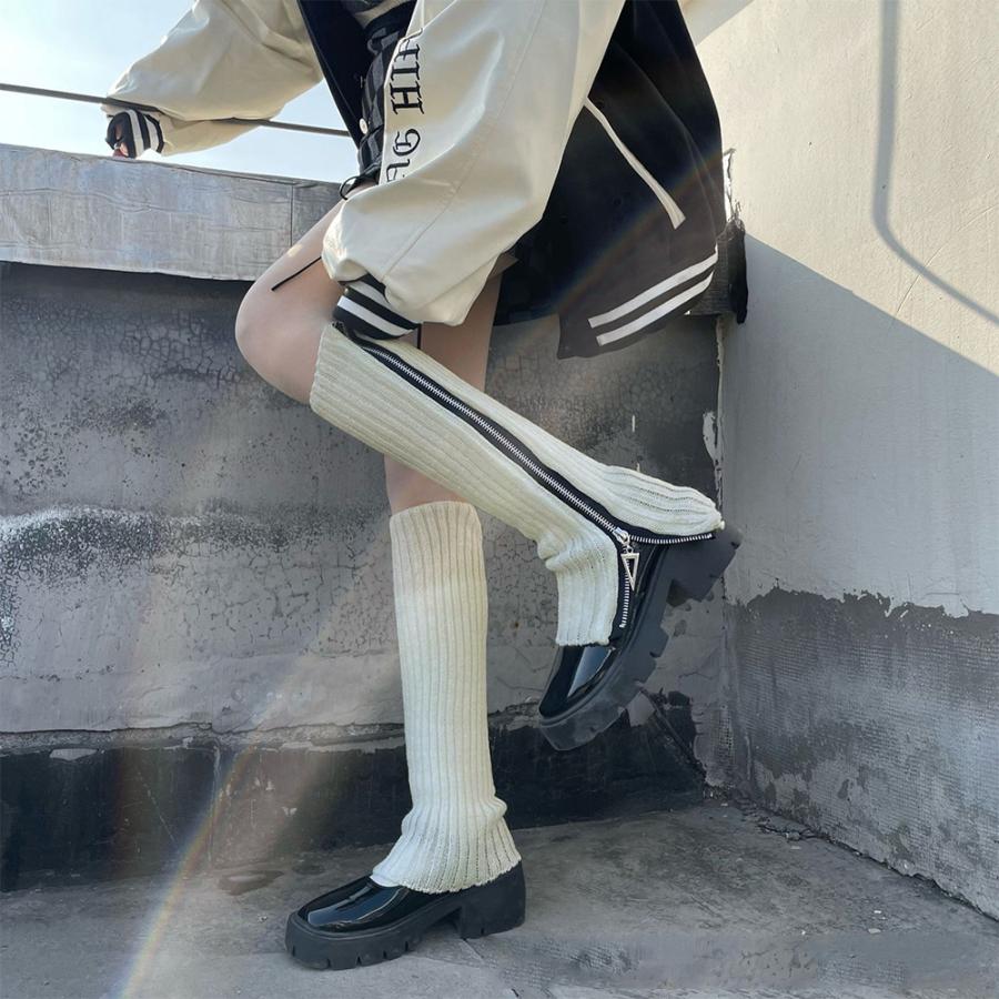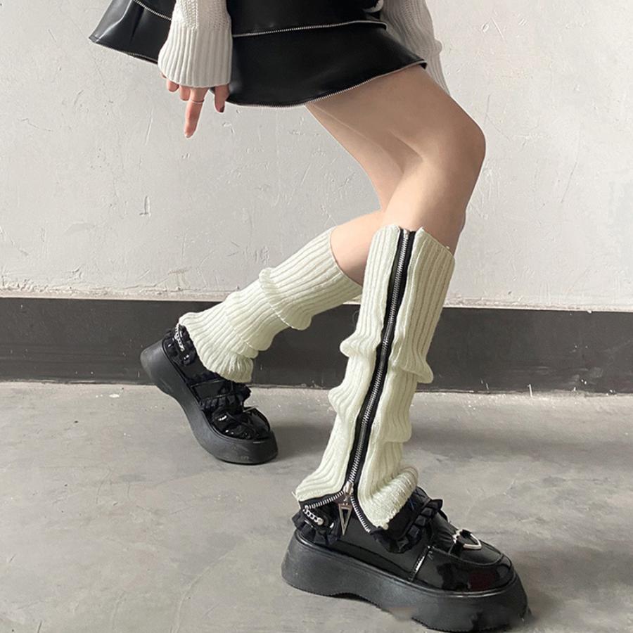 トレンドのフレアシルエットを取り入れたジップデザインのレッグウォーマー