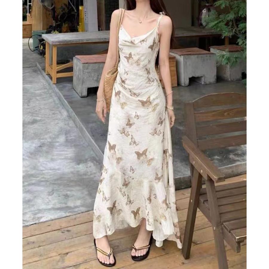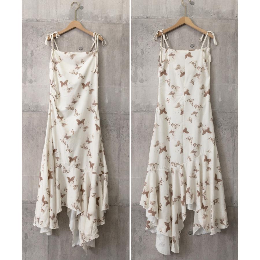 蝶柄が目を引く、フェミニンで華やかなキャミソールワンピース。