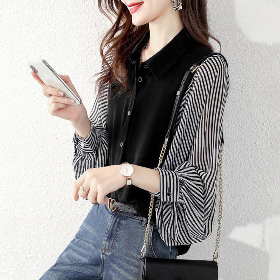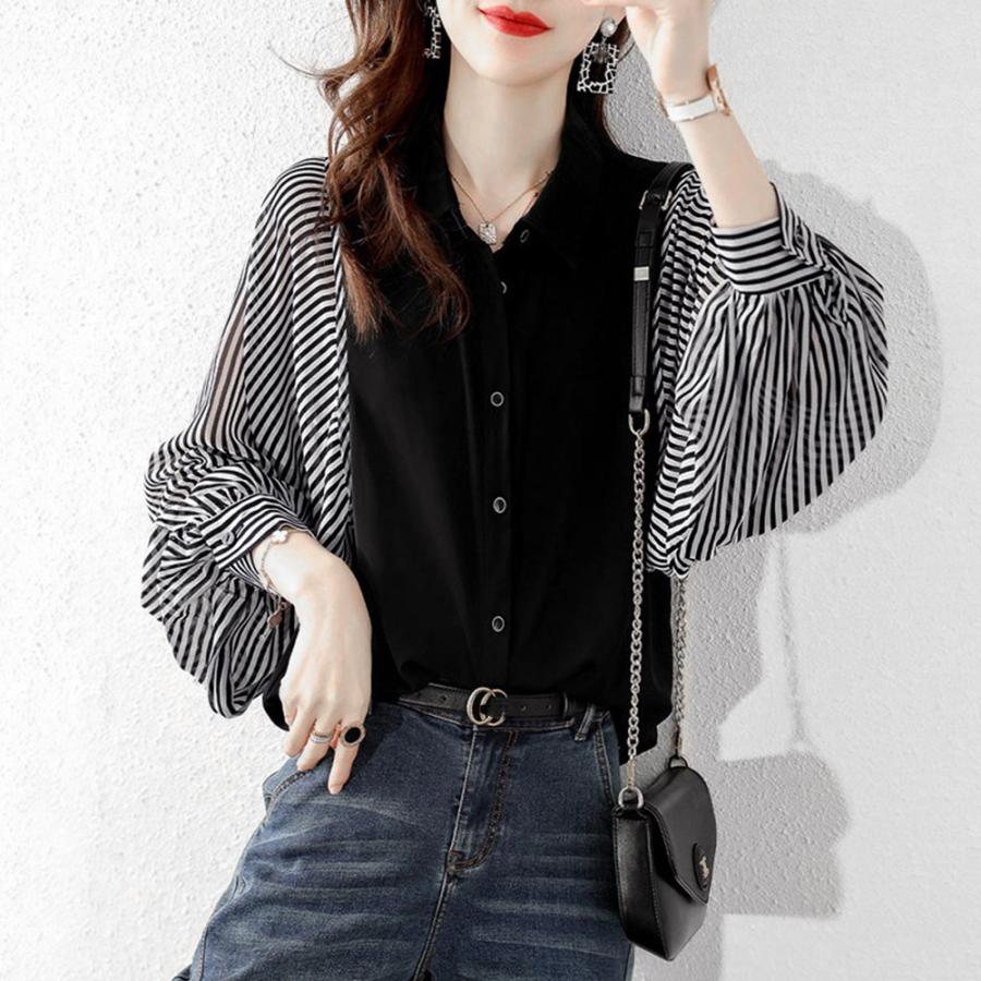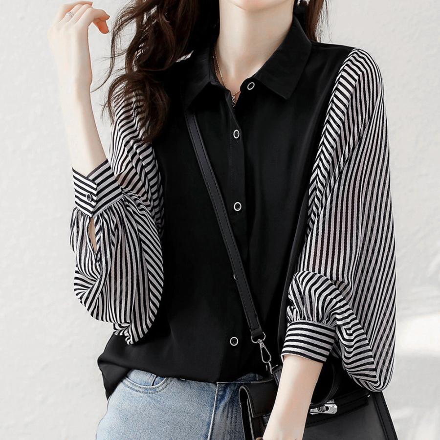ゆったり ストライプ柄 ブラウス 袖切り替え オフィスカジュアル トップス 大人女性 おしゃれ ブラウス着やせ 通勤大人