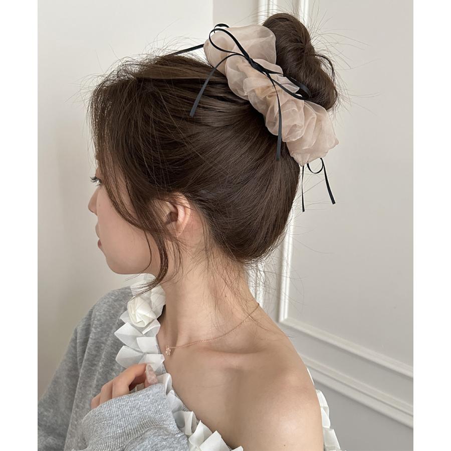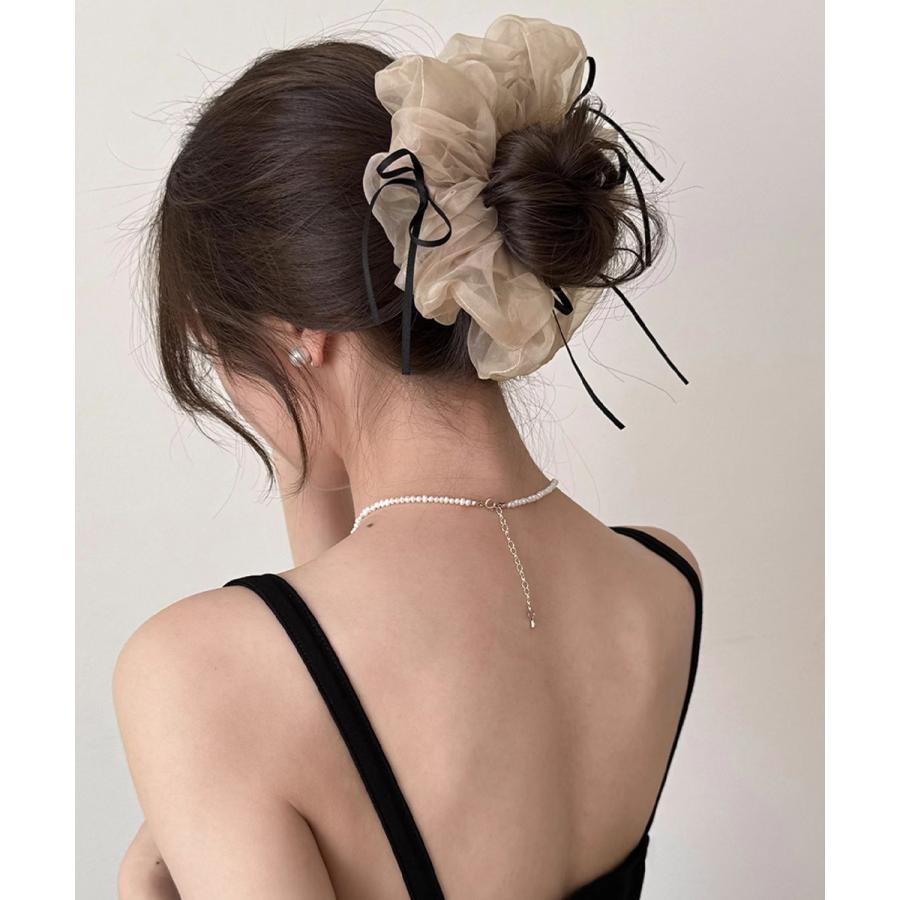 やわらかなシフォン素材に、細リボンのアクセントが可愛いボリュームシュシュ