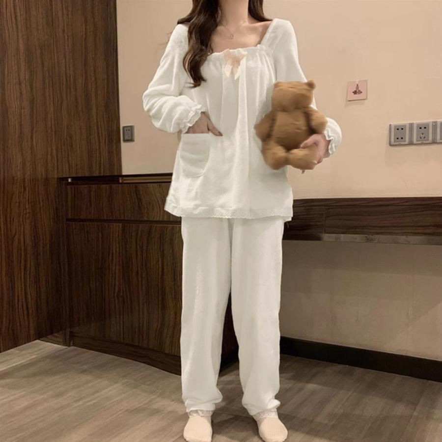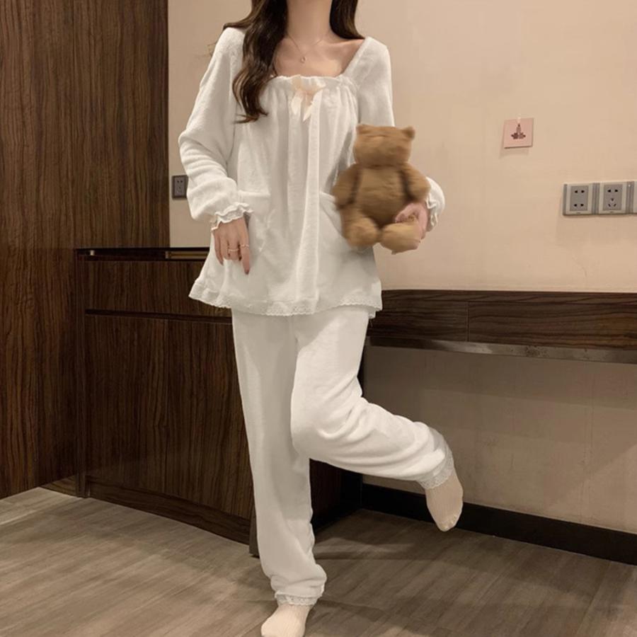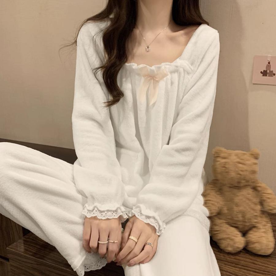 もこもこ 長袖パジャマセット レディース あったか部屋着 可愛い室内着 ワンピースパジャマ ナイトウェア ラウンジウェア
