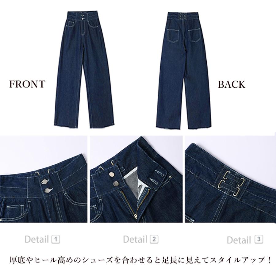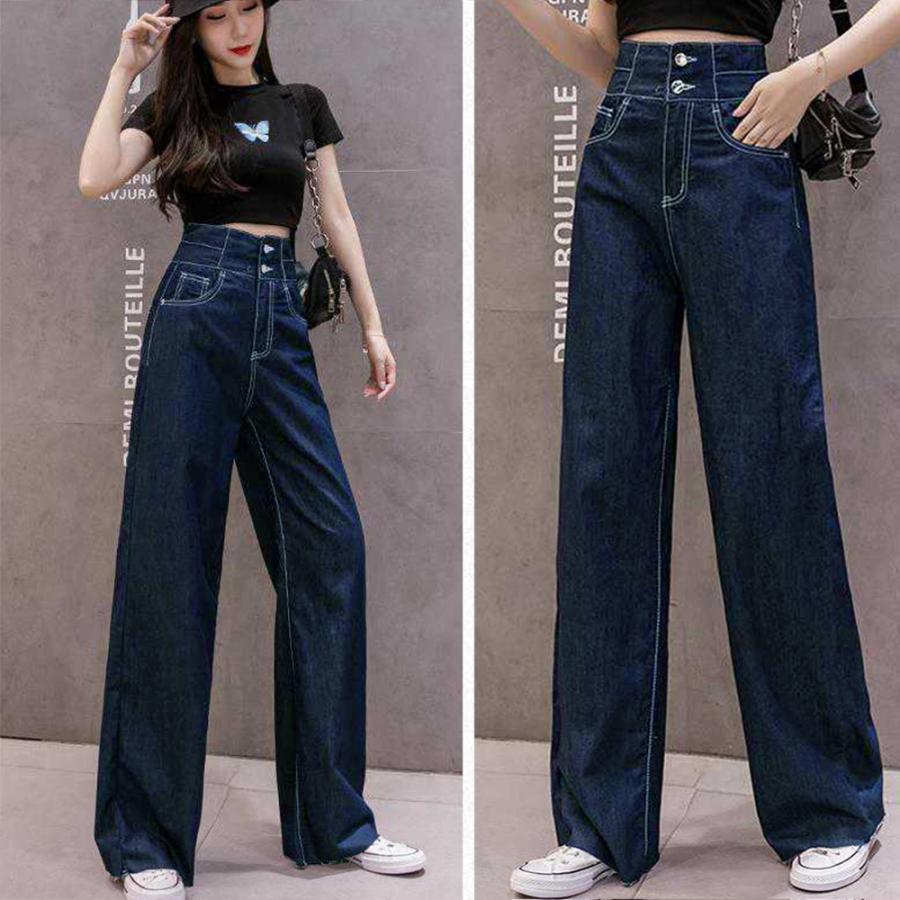 スタイルはよく見えるハイウエストデニムワイドパンツ