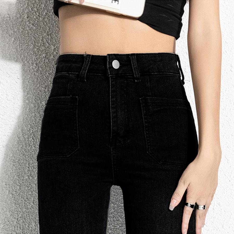 ストレッチパンツ レディース ハイウエスト パッチポケット ブーツカットパンツ カジュアルジーパン アメカジパンツ着やせ