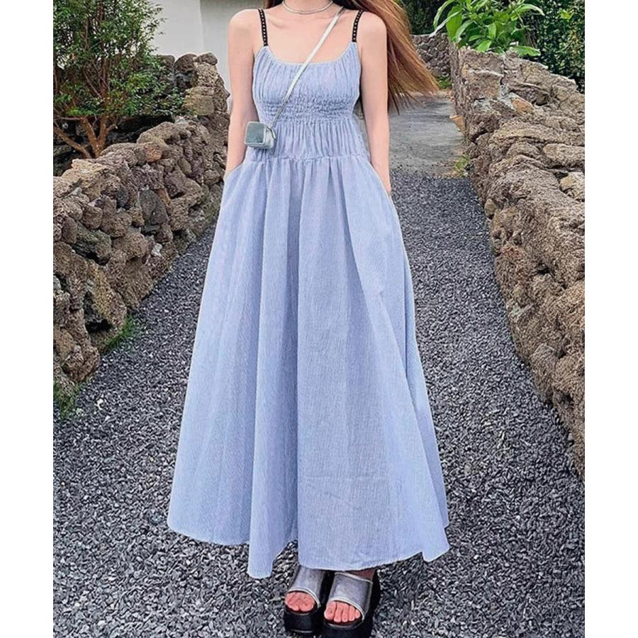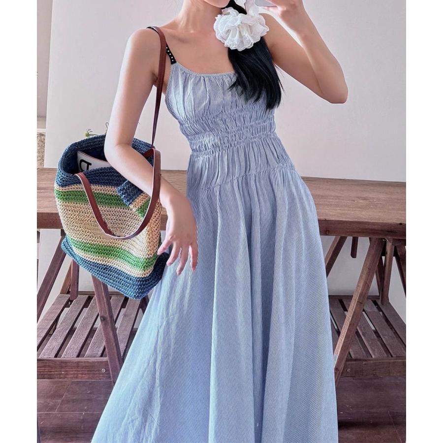 涼しげなストライプ柄が目を引く、大人可愛いキャミワンピース。