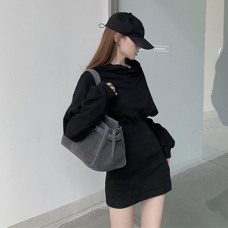 タイトワンピース トレーナーワンピ ショート丈 大人 無地 フェミニン ハイウエスト セクシー おしゃれ カジュアル